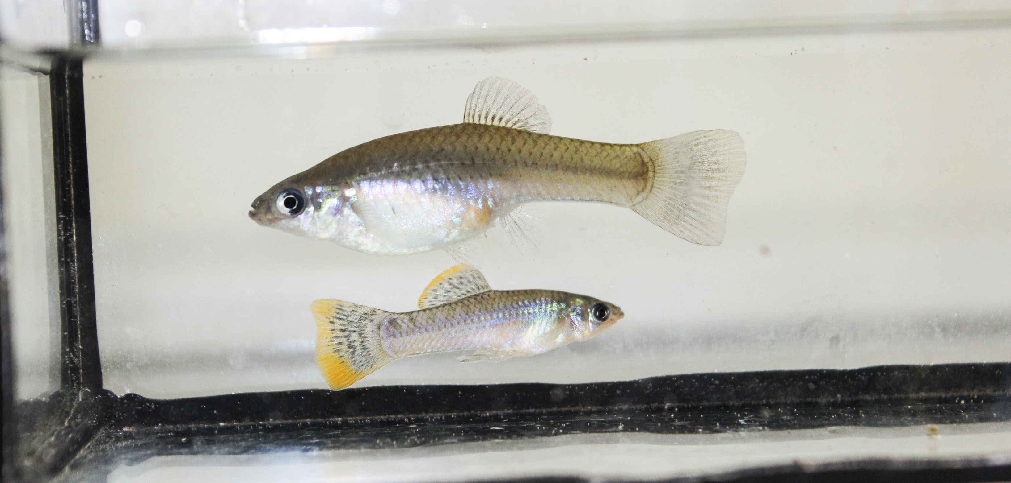 The female Atlantic molly is not very colourful, while the tail fins of the male glow in various shades of yellow and orange (Credits: Claudia Earp (Fishes1 and 2)/Martin Plath (Fishes3))