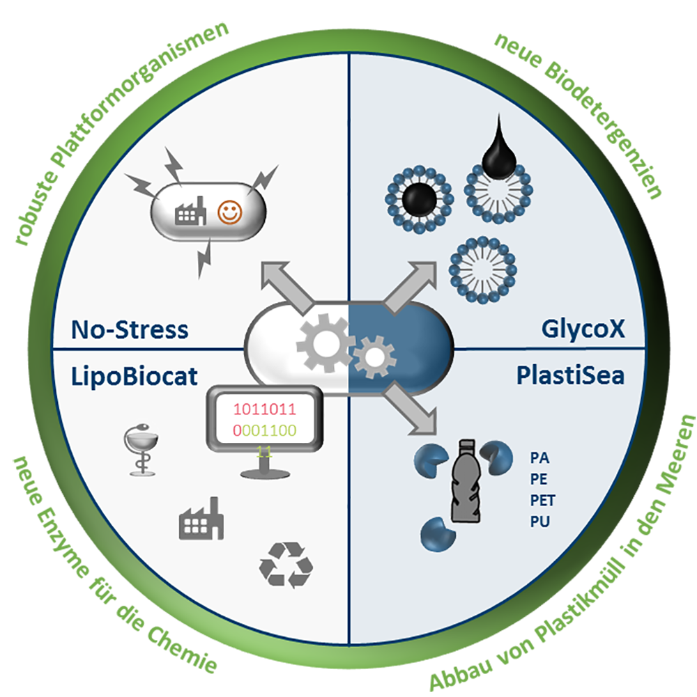 Das Projekt GlycoX („Erschließung des Glykolipid-Biosynthesewegs in Alcanivorax borkumensis“) will neuartige Biotenside auf Basis von Naturstoffen entwickeln. Tenside sind zum Beispiel ein wichtiger Bestandteil von Waschmitteln, mit ihnen werden Fette gelöst. Viele Tenside werden heute chemisch aus fossilen Rohstoffen hergestellt. Biotenside werden zum Beispiel von marinen Mikroorganismen produziert, die Erdöl abbauen können. Dazu zählt das ursprünglich in der Nordsee entdeckte Bakterium Alcanivorax borkumensis, dessen Fähigkeit zur Herstellung von Biotensiden im Projekt GlycoX nutzbar gemacht werden soll. Zudem sollen Anwendungsmöglichkeiten für Biotenside im Umweltschutz, zum Beispiel zur Entfernung von Öl- und Polymerverschmutzungen, erprobt werden.