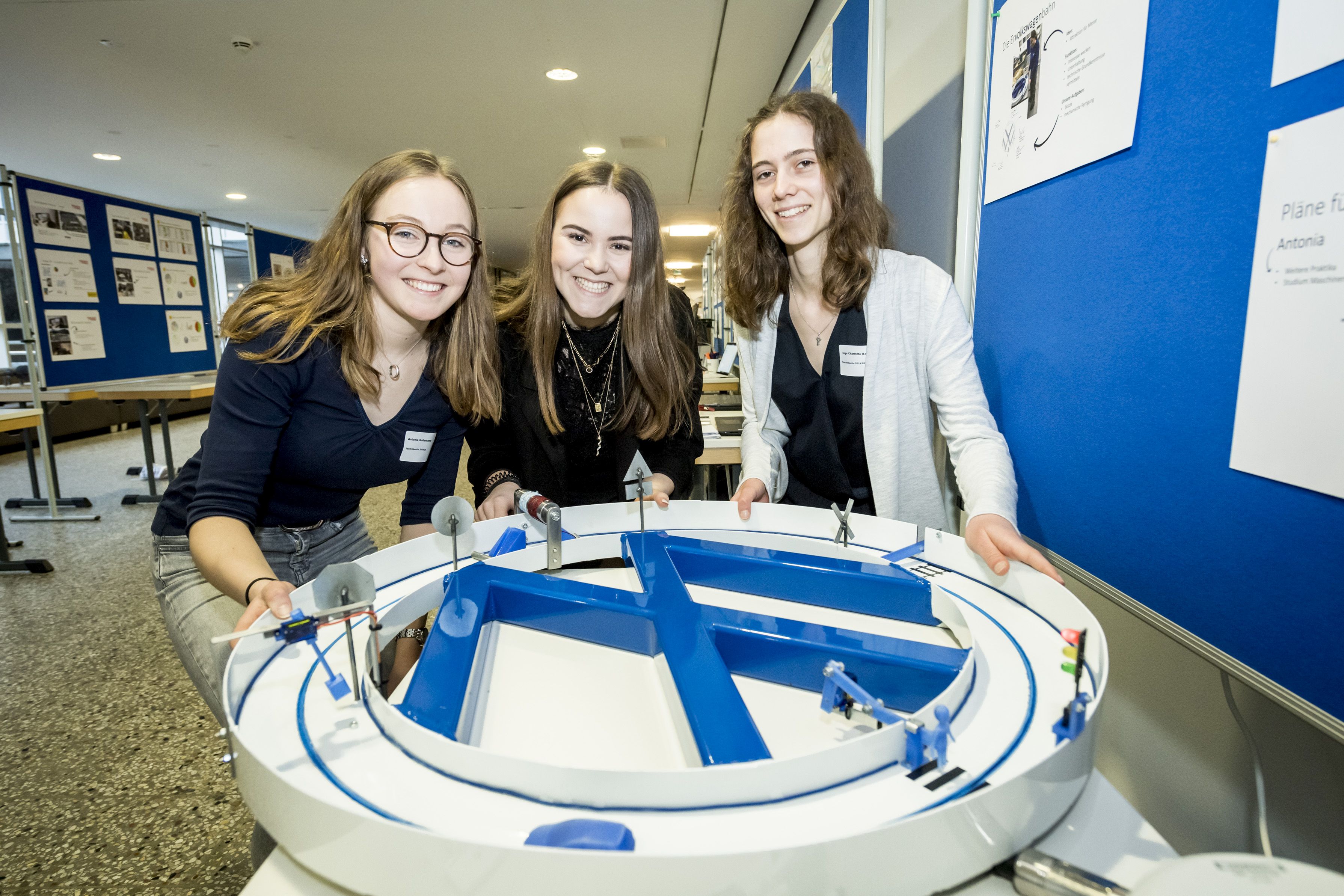 Vor rund 200 Gästen stellten jetzt die 28 Osnabrücker Technikantinnen in der Hochschulaula ihre Projekte vor, die sie in ihren Betrieben selbstständig bearbeitet haben. Das Spektrum der in den Betrieben erlernten Fähigkeiten reicht dabei vom Programmieren über das Schweißen bis zum Konstruieren und Planen. An der Hochschule und der Universität haben die Teilnehmerinnen Vorlesungen in der Audio- und Videotechnik, dem Maschinenbau, der Werkstofftechnik, der Physik, der Informatik und der Wirtschaftsinformatik besucht und erste Prüfungen ablegt. Die meisten Absolventinnen sind sich sicher, dass ein naturwissenschaftliches oder technisches Studium für sie genau das richtige ist.