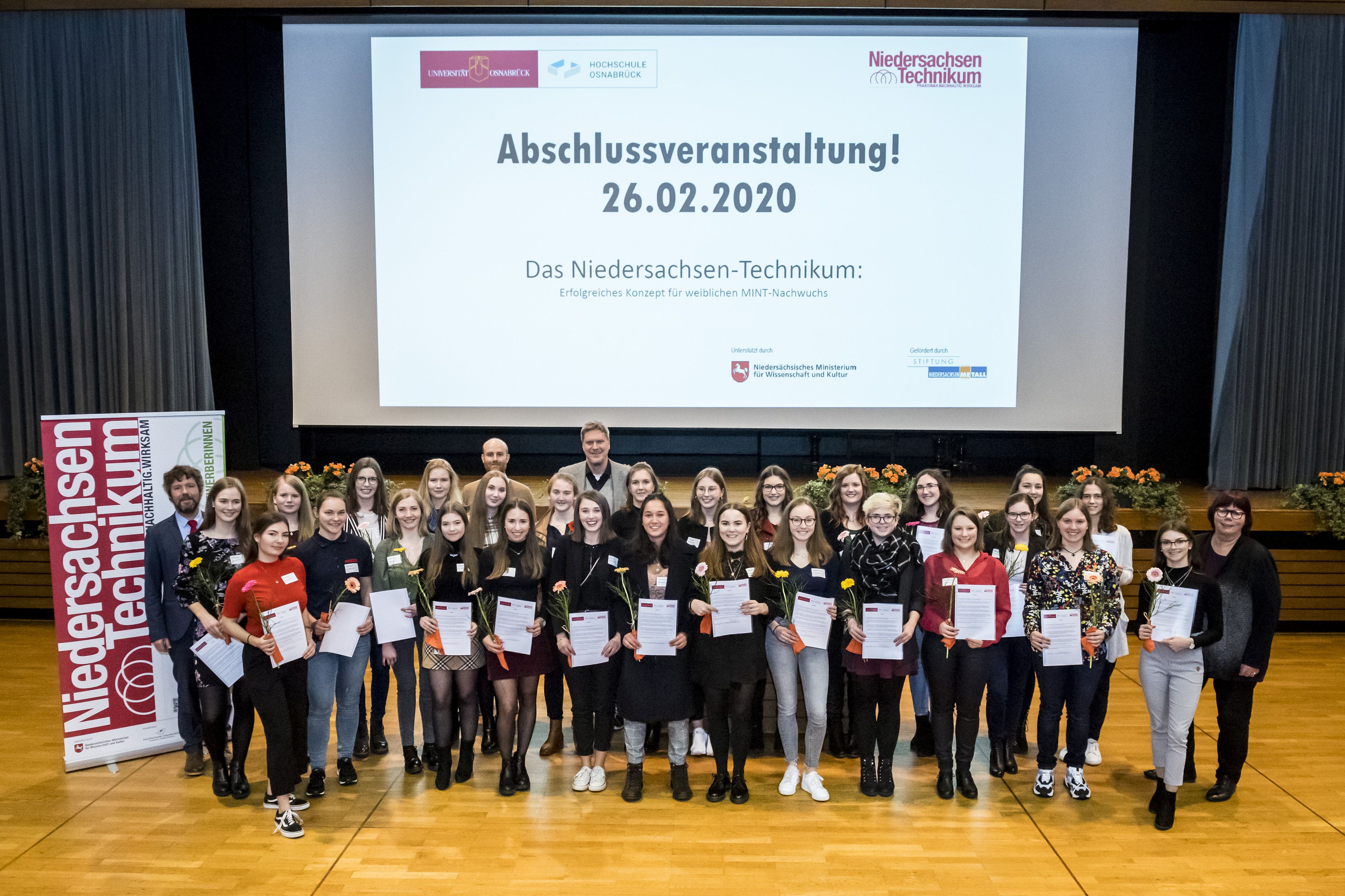 Seit zehn Jahren begeistert das Kooperationsprogramm niedersächsischer Hochschulen, Universitäten und Unternehmen junge Frauen für technische Berufe. 28 Absolventinnen des Niedersachsen-Technikums an der Hochschule und der Universität Osnabrück erhielten jetzt ihre Zertifikate. Auf der Abschlussveranstaltung präsentierten sie Ergebnisse ihrer Unternehmensprojekte und schilderten ihre Erfahrungen.