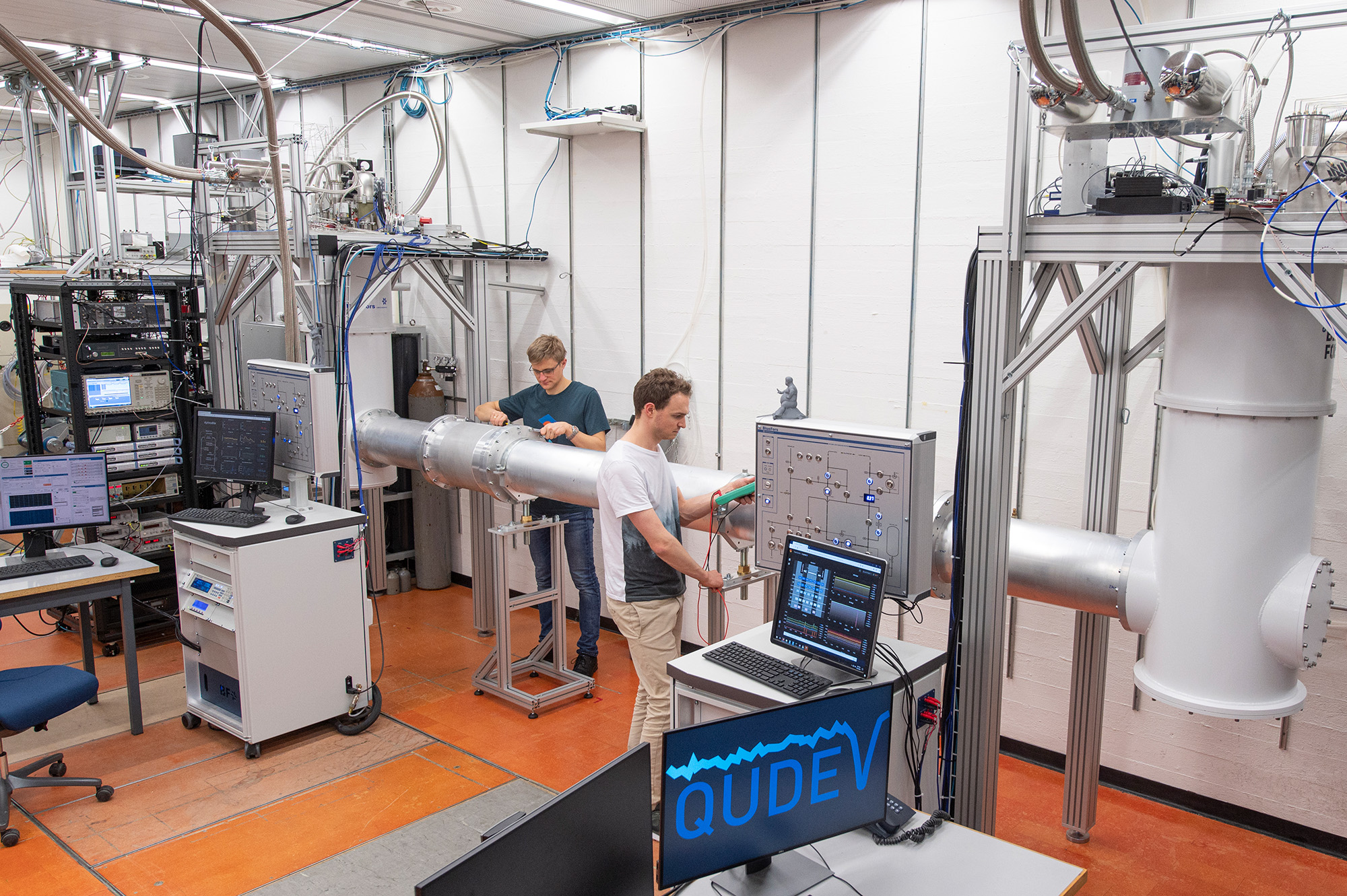 «Dies ist also eindeutig kein ‹Table Top›-Experiment mehr, das man auf einer kleinen Werkbank aufbauen kann», sagt Wallraff. «Da steckt viel Entwicklungsarbeit drin, und die ETH ist ein idealer Ort, um eine so anspruchsvolle Apparatur zu bauen. Es ist so etwas wie ein Mini-Cern, dass wir erst über Jahre bauen mussten, um nun endlich interessante Sachen damit zu tun». Ausser den drei Doktoranden, die die Experiment ausführten, waren auch mehrere Techniker in den Werkstätten der ETH und des Paul-Scherrer-Instituts (PSI) am Aufbau der Quantenverbindung beteiligt.