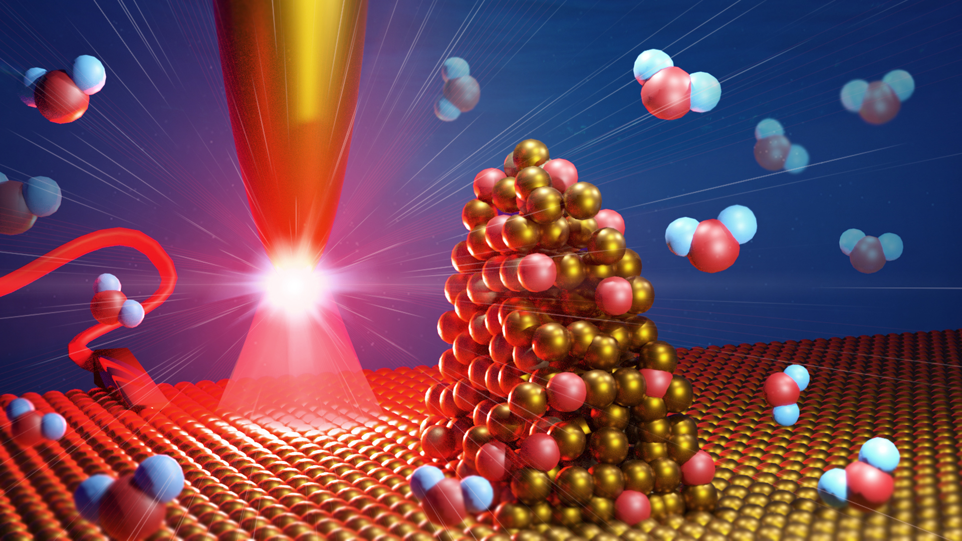Whether as a fuel or in energy storage: hydrogen is being traded as the energy carrier of the future. To date, existing methodologies have not been able to elucidate how exactly the electrochemical process of water splitting into hydrogen and oxygen takes place at the molecular scale on a catalyst surface. Scientists at the Max Planck Institute for Polymer Research (MPI-P) in Mainz have now developed a new method to investigate such processes "live" on the nanometer scale. The new detailed insights into the splitting of water on gold surfaces could aid the design of energy-efficient electro-catalysts.
