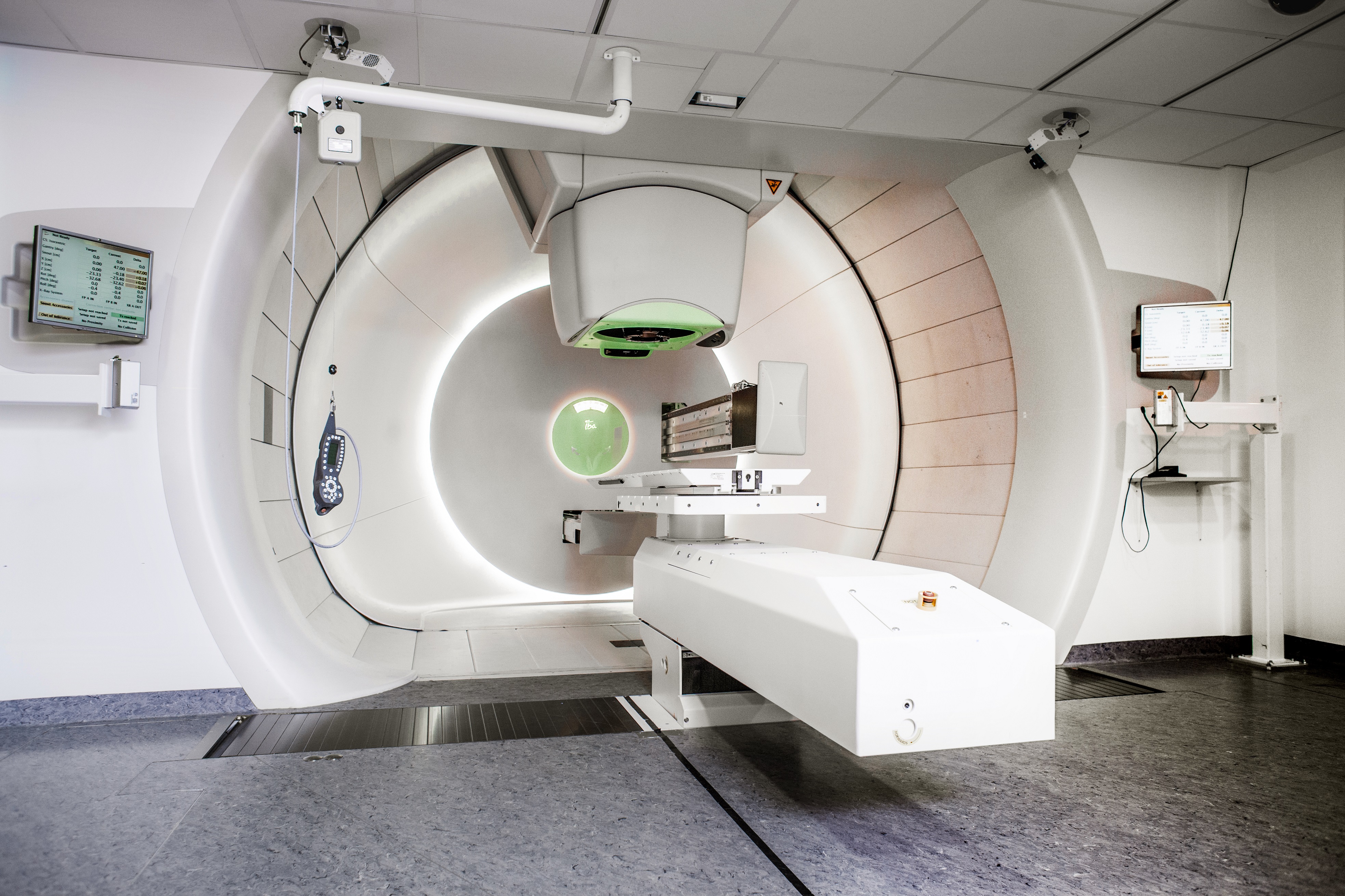 Die Hadronentherapie ist ein spezielles Verfahren der Radiotherapie, bei dem ein Tumor mit hochenergetischen Teilchen – anstatt mit Photonen wie bei der herkömmlichen Bestrahlung – bestrahlt wird. Meistens handelt es sich bei diesen Teilchen um Protonen, weshalb diese Therapieform oft als Protonentherapie bezeichnet wird. Aus einem Beschleuniger werden die Teilchen mit bis zu 60 Prozent der Lichtgeschwindigkeit als gebündelter Strahl präzise auf das Tumorgewebe gelenkt. Beim Eindringen in den menschlichen Körper wird der Strahl so gebremst, dass die Teilchen den größten Teil ihrer Energie direkt im Tumorherd abgeben und dadurch die Tumorzellen schädigen. Der Vorteil der Hadronentherapie ist, dass im Tumor eine sehr hohe Strahlendosis deponiert werden kann, während das umliegende Gewebe – insbesondere Risikoorgane – geschont werden. Durch spezielle physikalische Verfahren kann der Tumor sehr zielgenau entlang seiner individuellen Form bestrahlt werden.