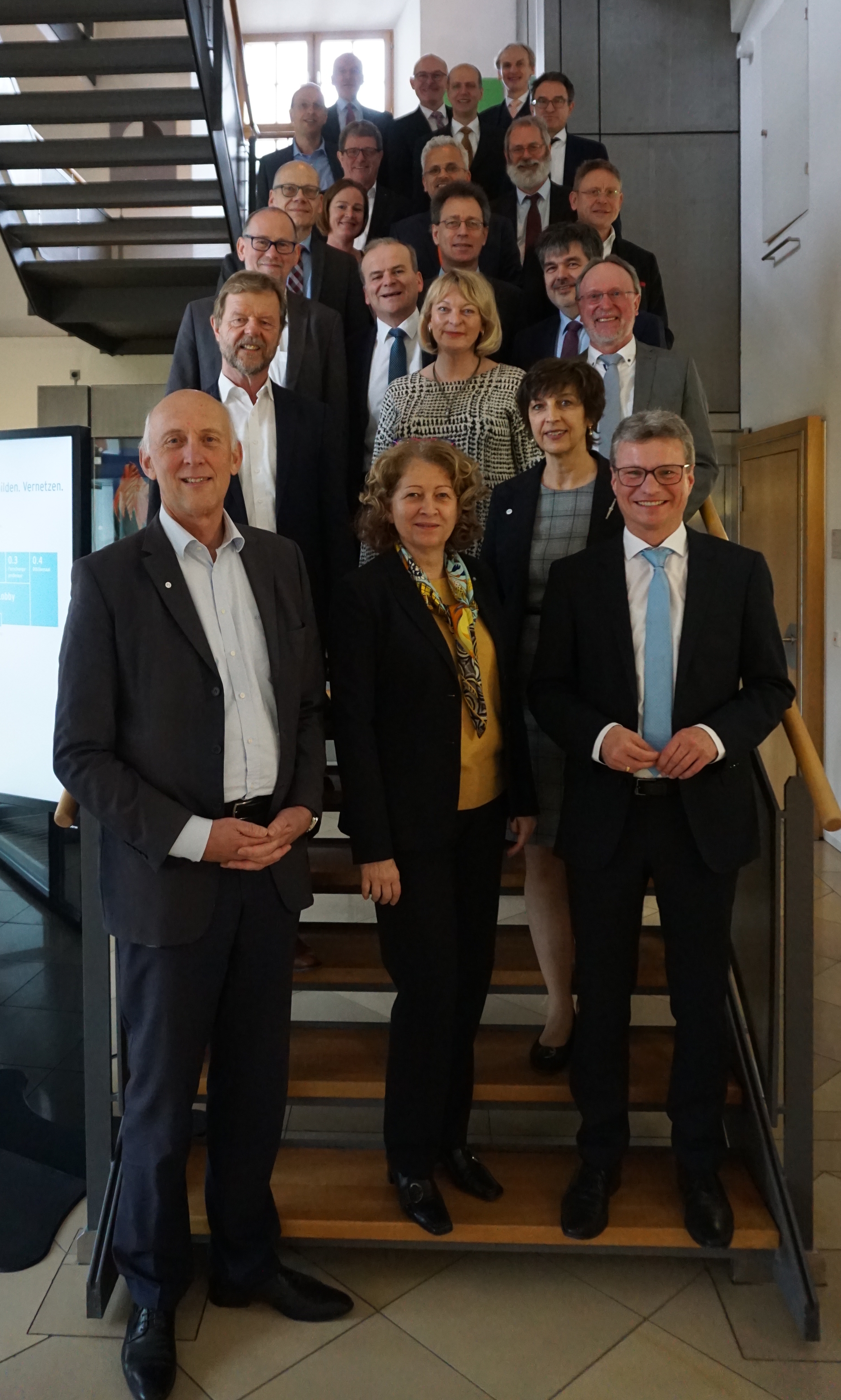 Im Februar kamen die Präsidentinnen und Präsidenten der bayerischen Hochschulen (HAW) im Hochschulzentrum Vöhlinschloss in Illertissen zu ihrer traditionellen Winterklausurtagung zusammen. Im Zentrum der Gespräche stand der Austausch mit dem Bayerischen Staatsminister für Wissenschaft und Kunst Bernd Sibler über die aktuellen Entwicklungen des Hochschulstandorts Bayern. Zentrales Thema war die Umsetzung der Hightech Agenda Bayern. Prof. Dr. Uta M. Feser betonte: „Die bayerischen Hochschulen (HAW) haben in den letzten Jahren Enormes geleistet. Alle Ziele der Ausbauplanung wurden erreicht. Seit 2005 haben die bayerischen Hochschulen (HAW) die Zahl ihrer Studienanfänger um 75 % gesteigert. Im Moment studieren mit circa. 120.000 Studierenden so viele junge Menschen wie noch nie an den Hochschulen. Darüber hinaus haben die Hochschulen (HAW) ihre Forschungsleistung immer weiter ausgebaut. Sie gelten heute als Innovationsgaranten ihres regionalen Umfelds. Beeindruckend haben die bayerischen Hochschulen (HAW) ihr Können und ihre Dynamik immer wieder unter Beweis gestellt. Die Hightech Agenda Bayern eröffnet für die staatlichen und kirchlichen Hochschulen in allen Regionen und Metropolen Bayerns große Chancen sich strukturell weiterzuentwickeln. Die angekündigte Reform des Hochschulgesetzes wird dann erfolgreich sein, wenn sie den Hochschulen wirkliche Freiräume eröffnet. Wer Freiheit für die Hochschulen wagt, entfesselt ihr wahres Innovationspotential. Das Ziel kann wie angekündigt nur eine moderne, unternehmerische, offene und internationale Hochschule sein. Die geplante Forschungsfinanzierung gehört hier als ein sehr wichtiges Beispiel dazu. Die Einführung von Globaldeputaten in Verbindung mit Kapazitäten für angewandte Forschung stellt einen Quantensprung für die bayerischen Hochschulen (HAW) dar. Die Rolle der Forschung an den Hochschulen (HAW) erfährt damit in ihrer staatlichen Finanzierung erstmals die Anerkennung, die ihr in der Praxis bereits langjährig zukommt.“ Prof. Dr. Uta M. Feser kündigte an, dass die Präsidentinnen und Präsidenten alle nun notwendigen Arbeiten zur Verwirklichung der Vision der Hightech Agenda Bayern als kompetente Ansprechpartnerinnen und Ansprechpartner begleiten werden.