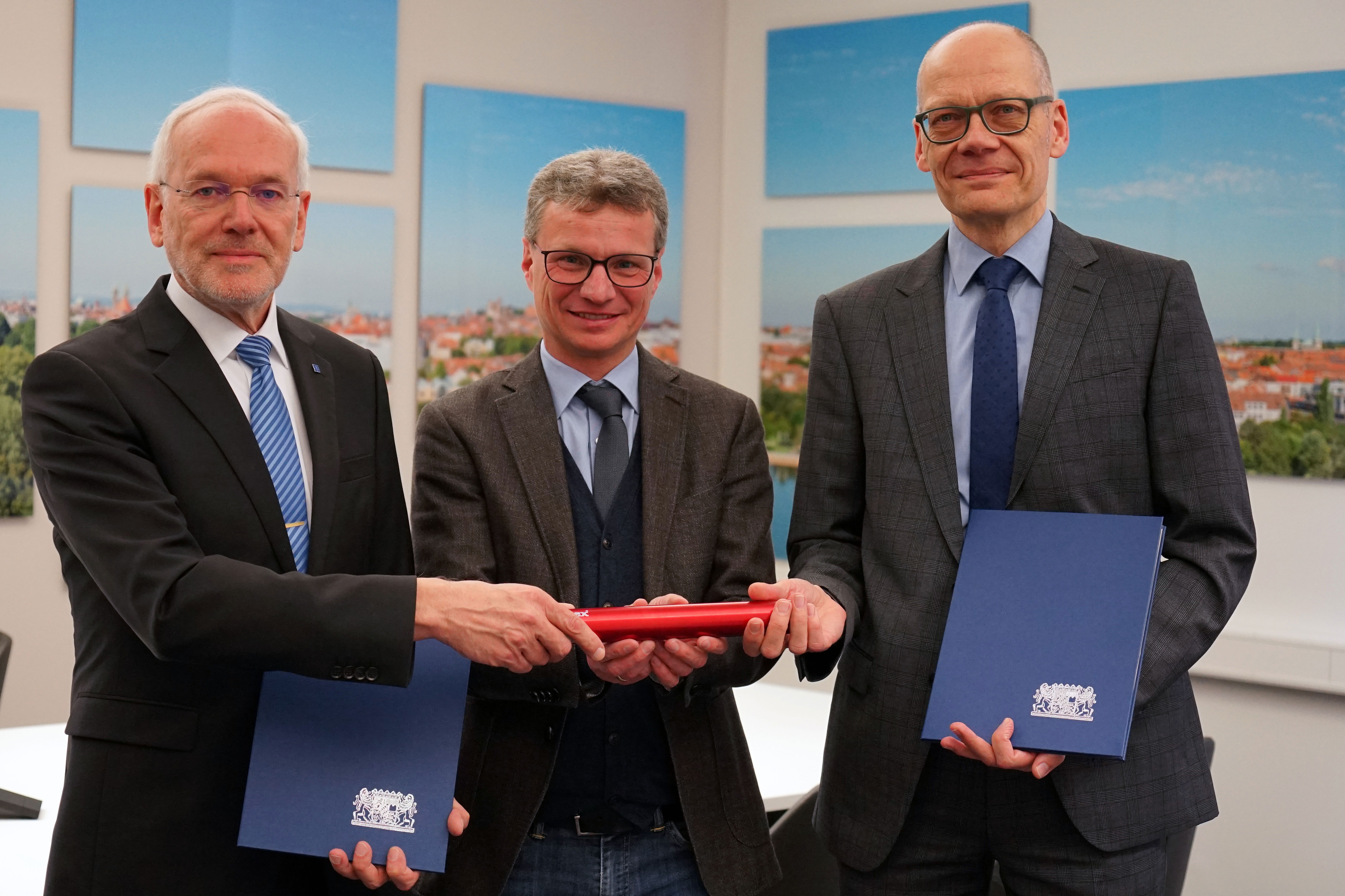 Wissenschaftsminister Bernd Sibler betonte: „Heute blicken wir zurück auf ein entscheidendes und prägendes Kapitel in der Erfolgsgeschichte der TH Nürnberg. Zugleich gehen wir voller Zuversicht der Zukunft entgegen. Ich bin mir sicher: Die vertrauensvolle Zusammenarbeit werden wir fortsetzen. In der Amtszeit von Prof. Dr. Braun hat die TH Nürnberg einen großartigen Sprung nach vorne gemacht. Das große Potenzial seiner Hochschule wie der Hochschulen für angewandte Wissenschaften überhaupt hat er konsequent gefördert und ausgebaut. Prof. Dr. Niels Oberbeck steht künftig an der Spitze einer hervorragend aufgestellten Hochschule! Als Vizepräsident hat er wegweisende Entscheidungen bereits mitgetroffen. Ich bin mir sicher, bei ihm ist die TH Nürnberg in sehr guten Händen! Ich freue mich auf die Zusammenarbeit und die Impulse, die er künftig setzen wird.“