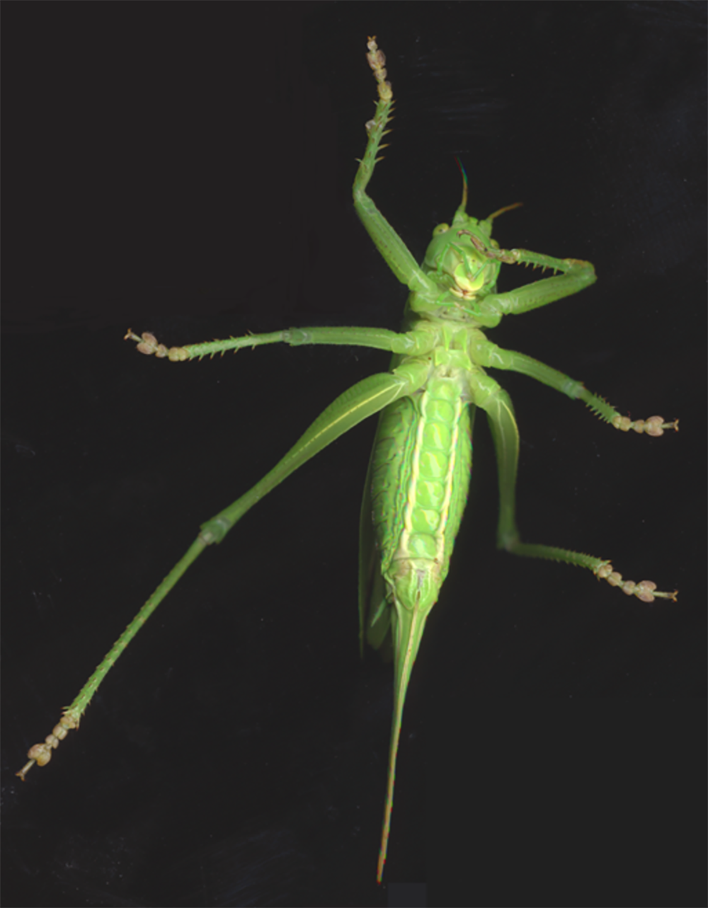 Bildunterschrift: Der besondere Aufbau der Füße von Heuschrecken brachte die Kieler Wissenschaftler auf ihre Idee für ein künstliches Reibungssystem, das auf verschiedenen Oberflächen funktioniert.