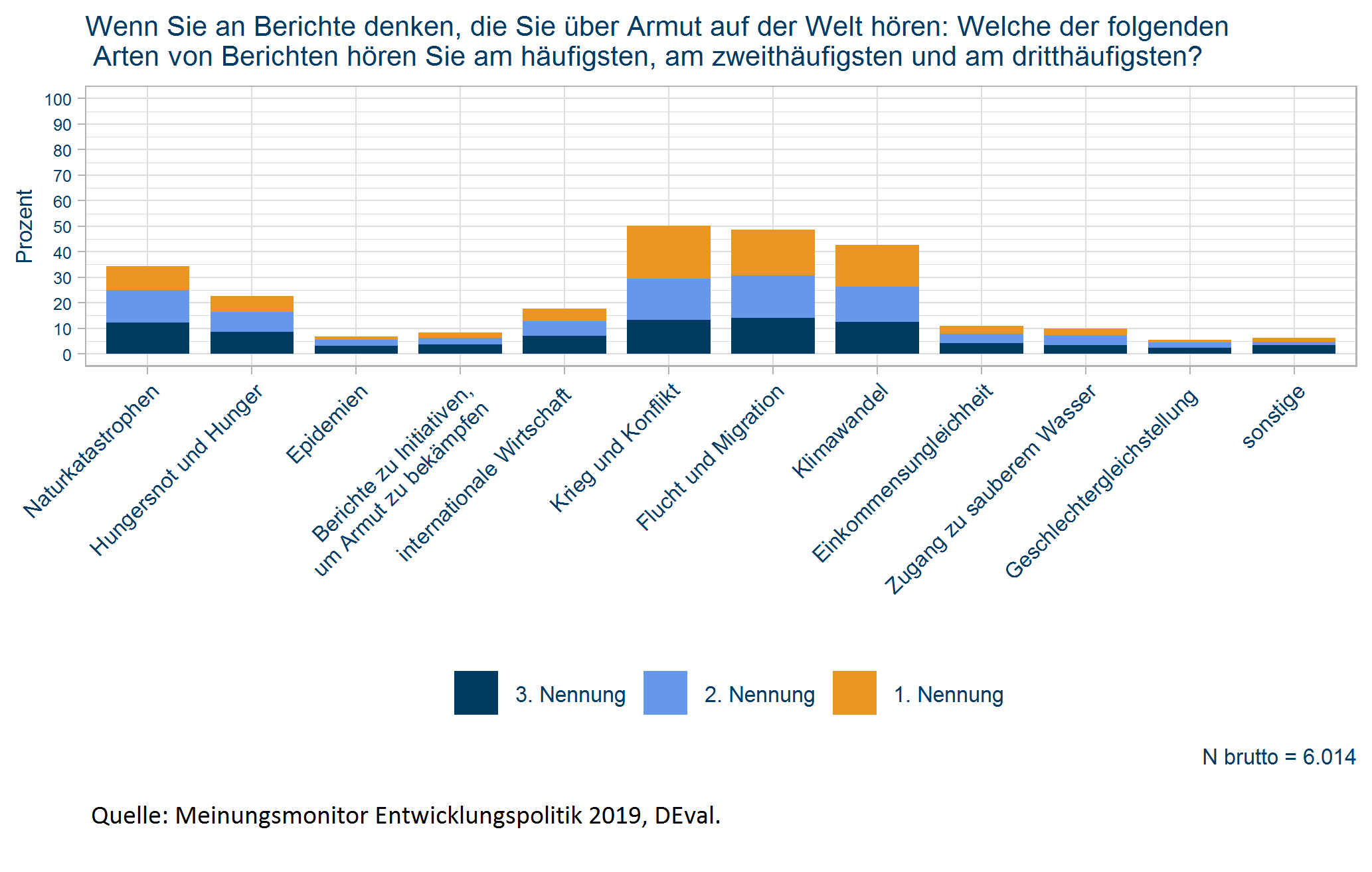 Schneider, S. H., J. Eger, P. Morini, D. Hudson und J. Hudson (2019), Meinungsmonitor Entwicklungspolitik 2019 – Medien, Mediennutzung und Berichterstattung zu weltweiter Armut, Deutsches Evaluierungsinstitut der Entwicklungszusammenarbeit (DEval), Bonn.