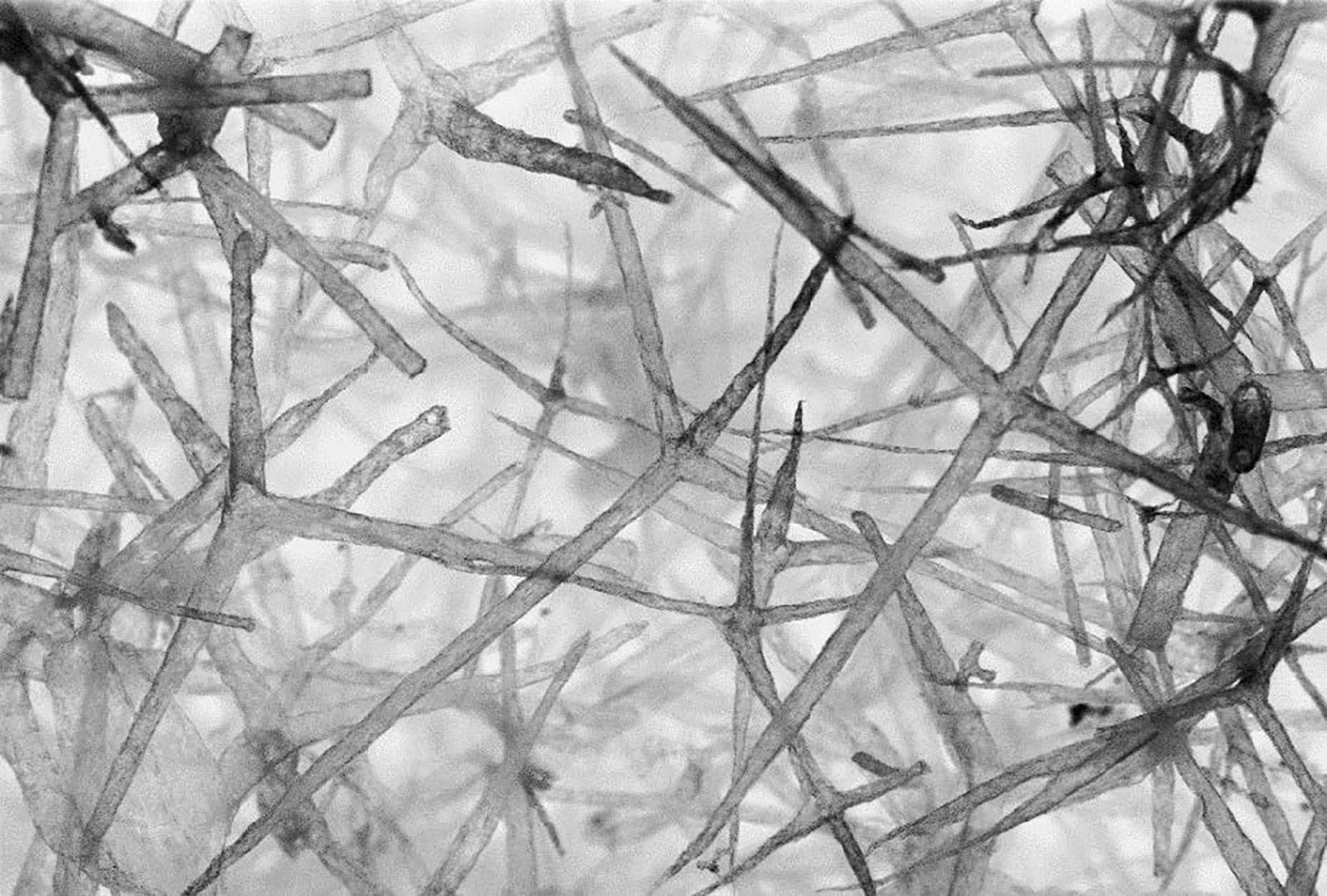 Bildunterschrift: In dem feinen Netz aus einer Vielzahl von Hohlröhren, jede nur wenige Mikrometer groß, werden einfallende Laserstrahlen so stark gestreut, dass ein homogenes weißes Licht reflektiert wird.