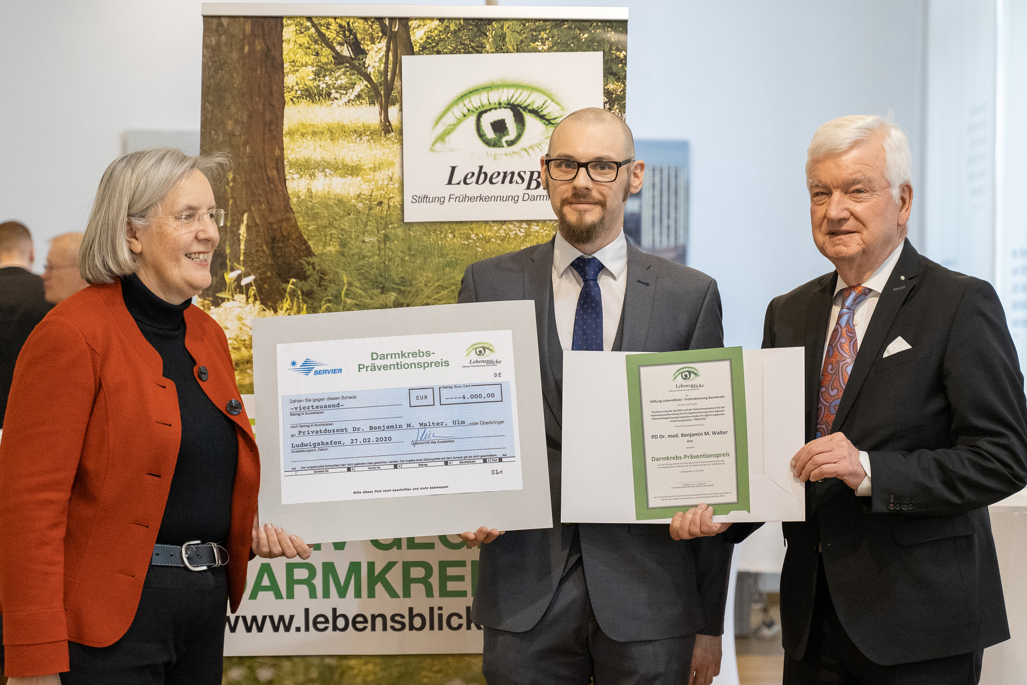 Für seine Forschung zum Thema digitale Patientenbegleitung ist PD Dr. Benjamin Walter, Leiter der Endoskopie der Inneren Medizin I des Universitätsklinikums Ulm, mit dem Darmkrebs-Präventionspreis 2020 der Stiftung Lebensblicke ausgezeichnet worden. Die Arbeitsgruppe „Endoskopische Forschung“ um Dr. Walter hat eine Anwendungssoftware entwickelt, um Patientinnen und Patienten besser auf eine Darmspiegelung vorzubereiten. Die Stiftung Lebensblicke hat dem Gastroenterologen dafür den Darmkrebs-Präventionspreis 2020 in Höhe von 4000 Euro zuerkannt.