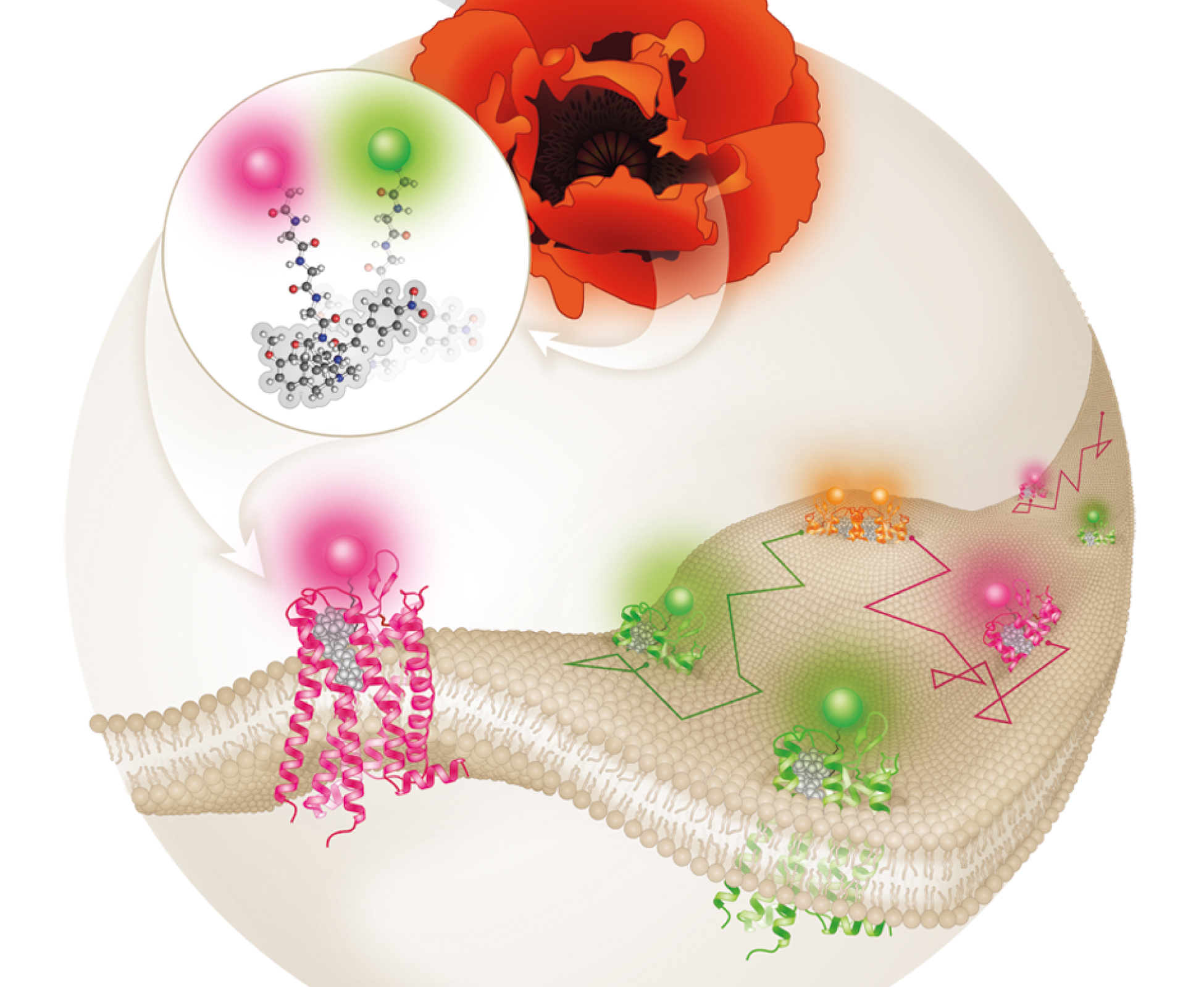 The research team came to its conclusion because it had previously developed highly selective fluorescent ligands for a subtype of the receptors, the so-called mu opioid receptor (MOR). This is the most important of the three receptor subtypes and is responsible for the desired pain-relieving but also for the addictive effect. The new ligands can be used as molecular probes to label the receptor highly specifically and to observe its behaviour in living cells using single-molecule fluorescence microscopy.