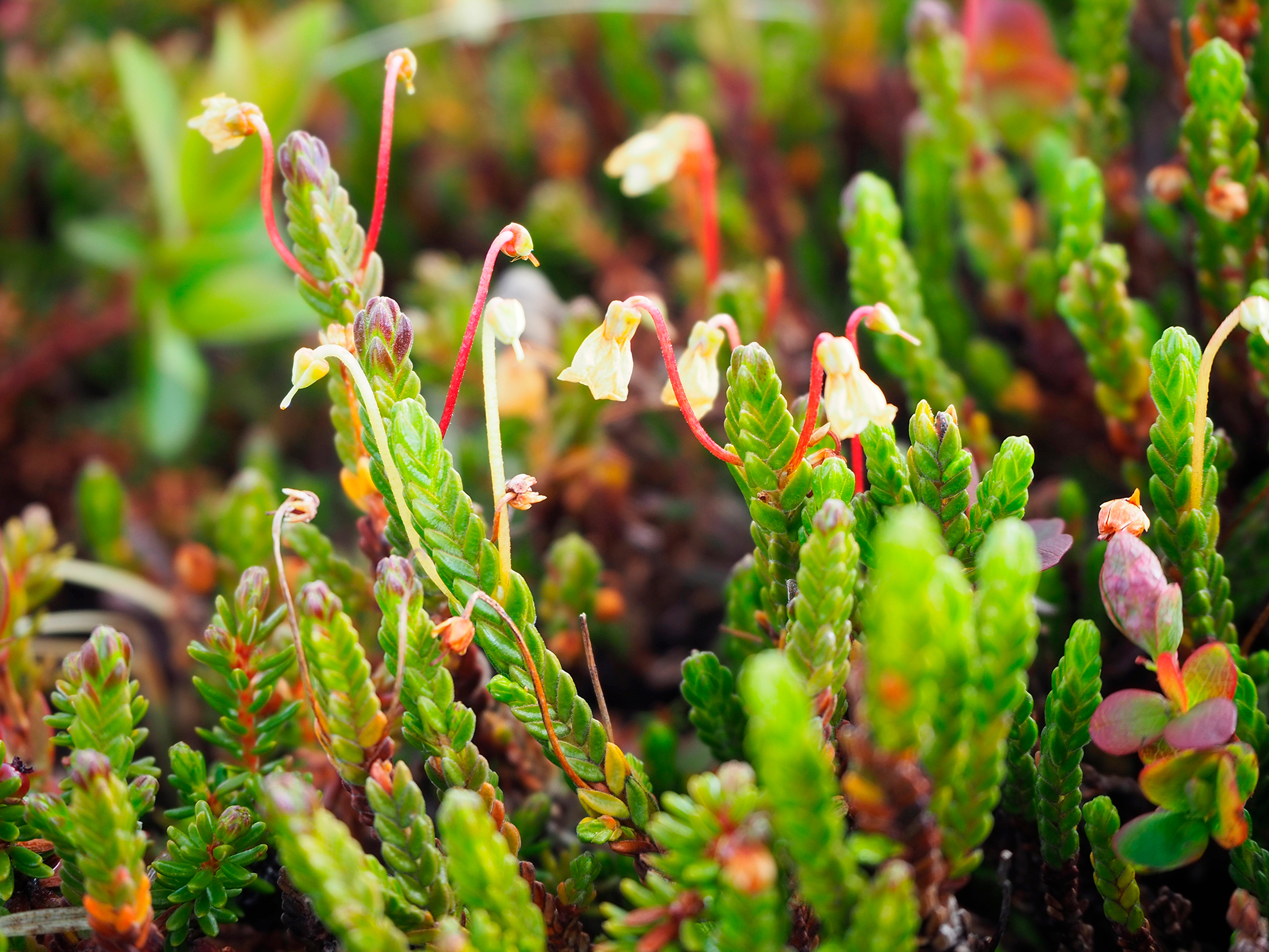 Gemeinschaften winziger Tundrapflanzen, hier die Maiglöckchenheide (Cassiope tetragona), gehorchen den gleichen Überlebens- und Fortpflanzungsregeln wie Pflanzengemeinschaften in weniger extremen Gegenden der Erde. – Foto: Dr. Alba Anadon-Rosell