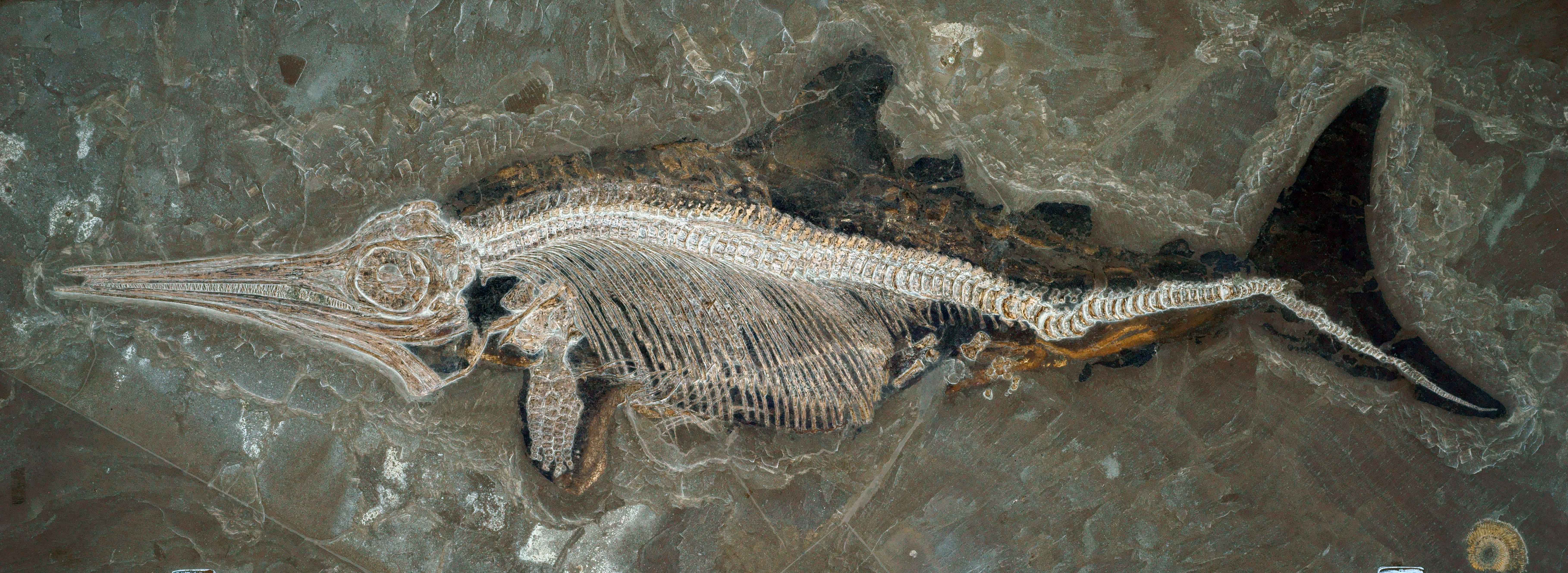Das Naturkundemuseum Stuttgart verfügt über eine weltweit bedeutende Ichthyosaurier-Sammlung mit zahlreichen Individuen aus der Zeit des Juras in Südwestdeutschland. Hier begannen die Stuttgarter Fischsaurierexpertinnen, Dr. Erin Maxwell und Dr. Judith Pardo-Pérez sowie der Wirbeltierpaläontologe Dr. Ben Kear aus Uppsala in Schweden mit ihrer Forschungsarbeit. Durch die exzellenten Erhaltungsbedingungen im Posidonienschiefer verraten die Fossilien viel über das Aussehen der ausgestorbenen Meeressaurier. Auch Spuren von Knochenbrüchen, Krankheiten und Skelettschäden sowie verheilte Bissspuren blieben erhalten. Die WissenschaftlerInnen kategorisierten bei über 100 Fossilien der Stuttgarter Sammlung die Art und Verteilung dieser Verletzungen und stellten fest, dass diese nicht zufällig waren. Beispielsweise zeigten ein Viertel der Schädel des Topräubers im Jurameer, Temnodontosaurus, Bisspuren von Artgenossen. Auch der kleinere Fischsaurier Stenopterygius zeigte diese Verletzungen. Gebrochene, aber verheilte oder im Heilungsprozess befindliche Rippen wurden bei allen Arten gefunden.