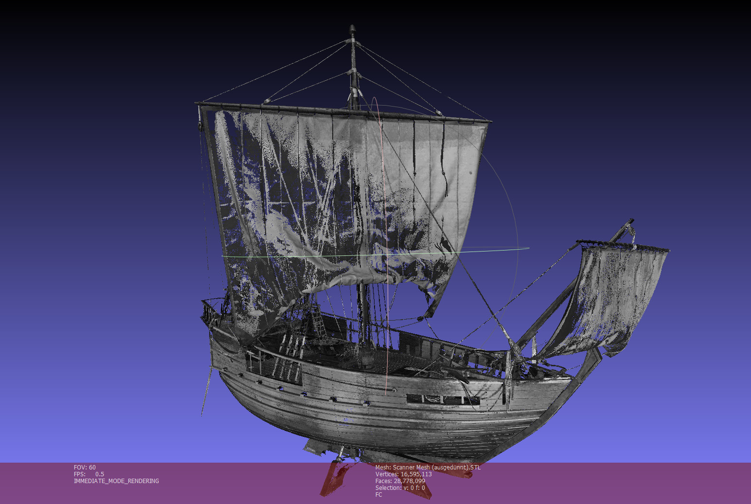 Die Photogrammetrie ist nicht die einzige Möglichkeit, mit der diese Modelle digitalisiert werden können. Dennis Niewerth und seine studentischen Hilfskräfte konnten zum Beispiel einen Computertomografen der Universität Bremen dafür ausprobieren. Außerdem stand ihnen kurzzeitig ein sogenannter Streiflichtscanner zur Verfügung. Damit tastete Dennis Niewerth ein Modell des Walfängers RAU IX von allen Seiten ab. Mehr als zehn Millionen Dreiecke berechnete das Programm für das digitale Modell des Schiffs. „Der zur Verfügung gestellte Laptop für den Streiflichtscanner hatte nur 32 Gigabyte Arbeitsspeicher. Die reichte nicht für eine völlig lückenlose Erfassung“, sagt Dennis Niewerth. „Schiffsmodelle sind ein Anwendungsfall, den die Hersteller solcher Geräte typischerweise nicht auf dem Schirm haben. Die industriellen Abnehmer wollen meist sehr viel einfachere Werkstücke erfassen. Mit ihren vielen kleinen Details sind unsere Modelle ein regelrechter Stresstest für die Technik.“