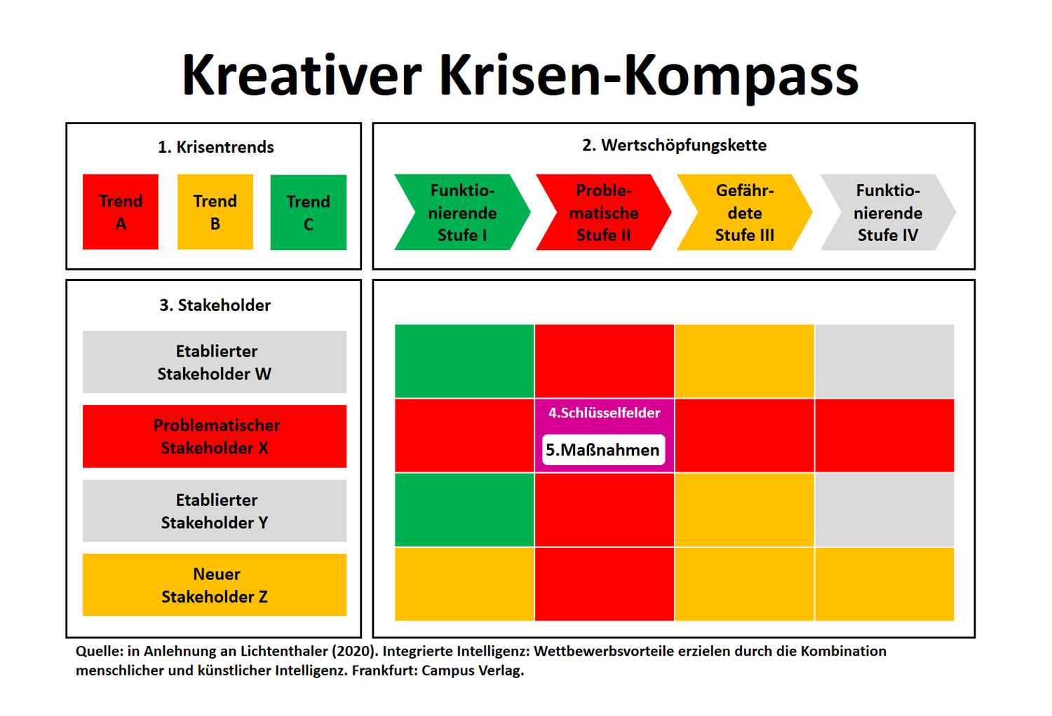 Gerade kleine und mittelständische Unternehmen stellt die Coronakrise auf eine harte Probe und macht dabei vor kaum einer Branche halt. Um Unsicherheit und Aktionismus entgegenzuwirken, hat Prof. Dr. Ulrich Lichtenthaler von der International School of Management (ISM) einen Krisen-Kompass entwickelt, der in praktischen Schritten einen Weg zum systematischen Vorgehen weist.