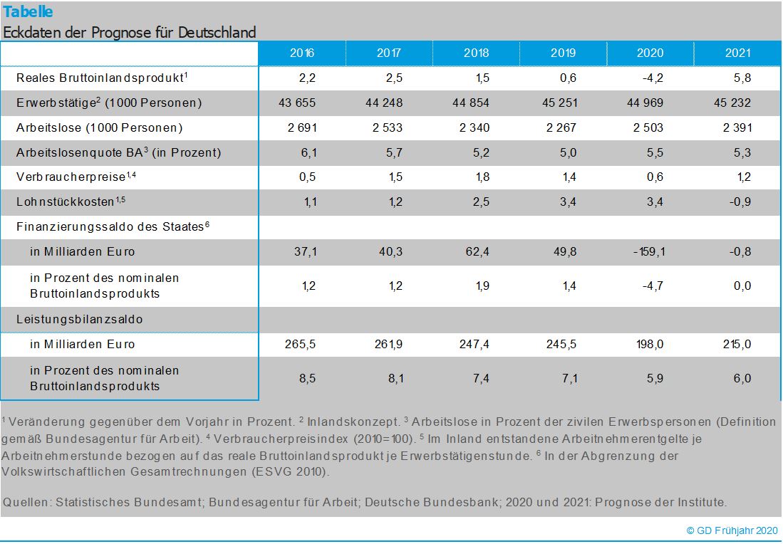 Gemeinschaftsdiagnose 1/2020: Wirtschaft unter Schock – Finanzpolitik hält dagegen