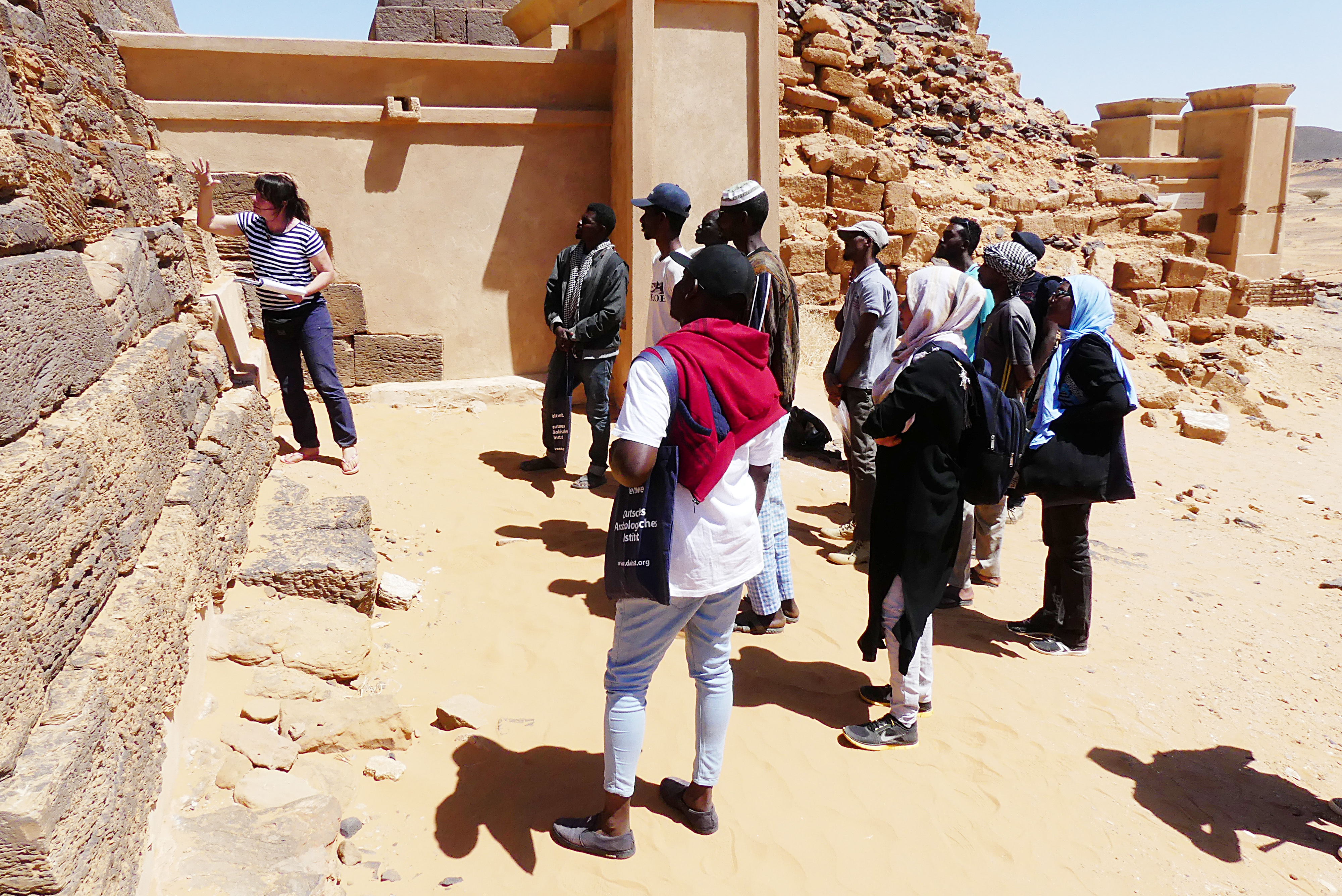 Der Erhalt und die Restaurierung der königlichen Pyramidenfriedhöfe von Meroe im Nordsudan ist eine Mammutaufgabe, an der sich das DAI in enger Zusammenarbeit mit der sudanesischen Denkmalbehörde, der National Corporation for Antiquities and Museums, und der Qatari Mission for the Pyramids of Sudan beteiligt. Ein wichtiger Baustein für die Entwicklung eines nachhaltigen Site-Managements für diese antike Stätte war ein Restaurierungslehrgang an den Pyramiden, den das DAI im März 2020 organsierte. Ziel dieser vom Auswärtigen Amt finanzierten Qualifizierungsmaßnahme war die fachliche Weiterbildung von 14 sudanesischen Teilnehmern aus unterschiedlichen Berufsgruppen (Restauratoren, Archäologen, Künstler, Handwerker und lokale Arbeitskräfte) in Konservierung und Denkmalpflege der Pyramiden und ihrer Opferkapellenreliefs.