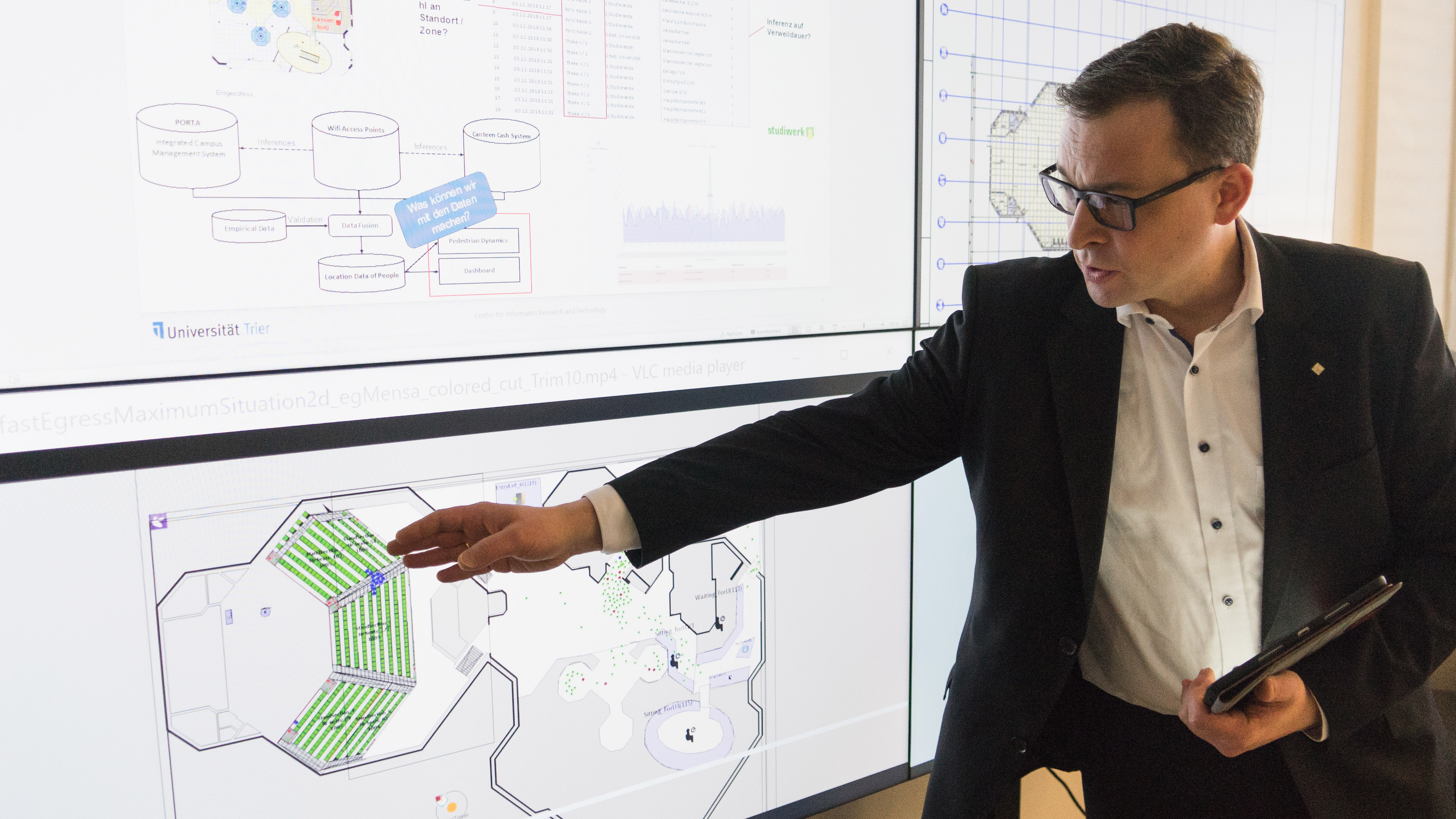 Schon vor mehreren Jahren hatte sich Ingo Timm, Professor für Wirtschaftsinformatik an der Universität Trier und Leiter des Themenfelds Kognitive Sozialsimulation am Deutschen Forschungszentrum für Künstliche Intelligenz (DFKI), mit Simulationsmodellen zur Ausbreitung der Grippe beschäftigt. Jetzt rechnen er und sein Mitarbeiter Dr. Jan Ole Berndt verschiedene Maßnahmen für die Corona-Pandemie durch. „Wir sind dabei, das erfolgreiche Grippe-Modell an die Corona-Pandemie anzupassen, und erste Tests sind vielversprechend“, sagt Berndt.