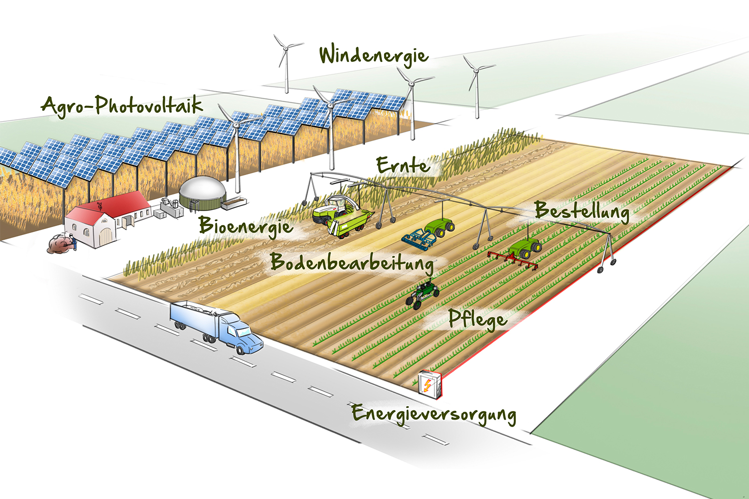 Eine vollständige Umstellung des Ackerbaus auf die Nutzung elektrischer Energie würde weitreichende Folgen mit sich bringen. So müssten der gesamte Energiebedarf und die vor allem zeitabhängigen Leistungsflüsse von der deutschen Energiewirtschaft abgebildet werden können. Infrastruktur, Arbeitsplätze in der Landwirtschaft und der ländliche Raum müssten neu gestaltet werden. Zugleich ist zu prüfen, welche neuen Möglichkeiten ein solcher Wandel für eine nachhaltigere und umweltverträglichere Landwirtschaft bietet.