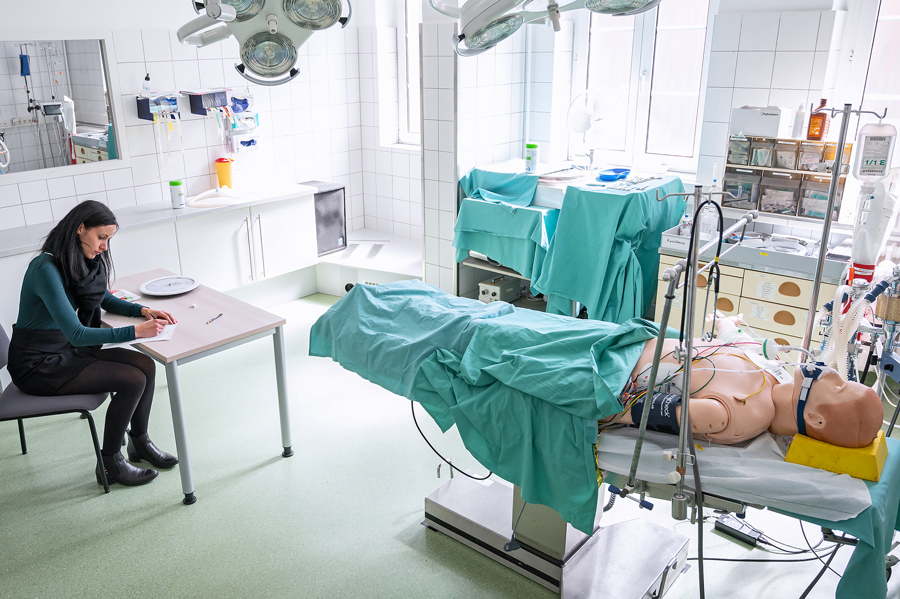 Aufgrund der aktuellen Verordnungen und hygienischen Regeln musste gewährleistet sein, dass zwischen den Studierenden der Mindestabstand eingehalten wurde und sich nicht zu viele Personen in einem Raum aufhielten. Für das Dorothea Erxleben Lernzentrum Halle (DELH), an dem die Prüfungen stattfanden, bedeutete das, flexible Lösungen zu finden. Kurzerhand wurde daher alles an Räumen im DELH zum Prüfungsraum umfunktioniert – auch die Übungs-Operationssäle -, Tische und Stühle bereitgestellt und die Prüfungsaufsicht entsprechend angepasst.