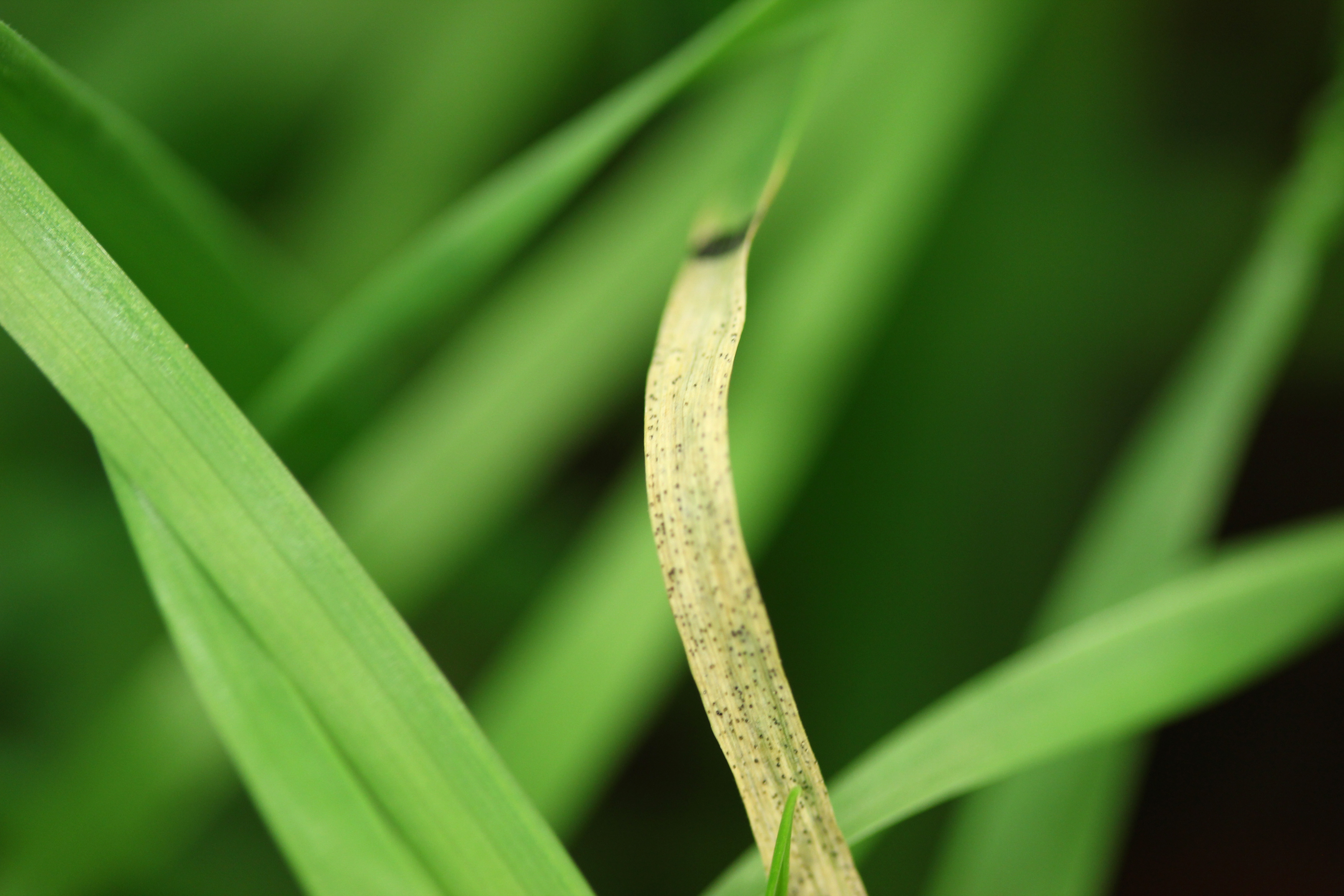 Caption: Pycnidia, the fungal fruiting bodies, on a wheat leaf in an infection experiment: Counting them helps to determine fungal performance and ability to infect the plant.