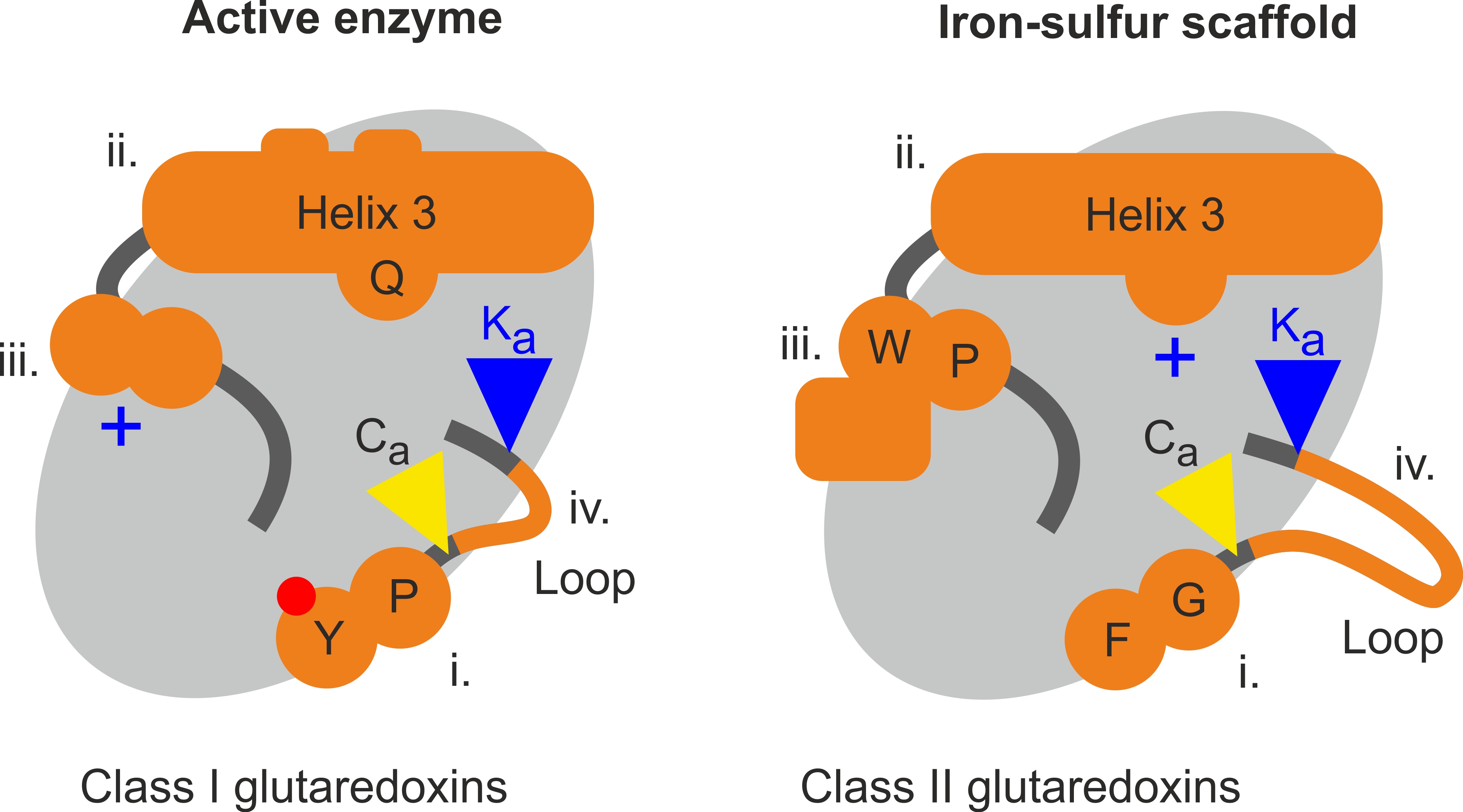 Kernmagnetresonanz-Strukturen der Proteine zeigten vier Bereiche, die Unterschiede oder Mutationen zwischen den Aminosäuresequenzen der Klasse I und der Klasse II enthielten. Marcel Deponte und seine Mitarbeiter wollten genau wissen, wie viel jede Mutation dazu beiträgt, das Protein zu einem katalytisch aktiven Glutaredoxin der Klasse I oder zu einem inaktiven Glutaredoxin der Klasse II zu machen.