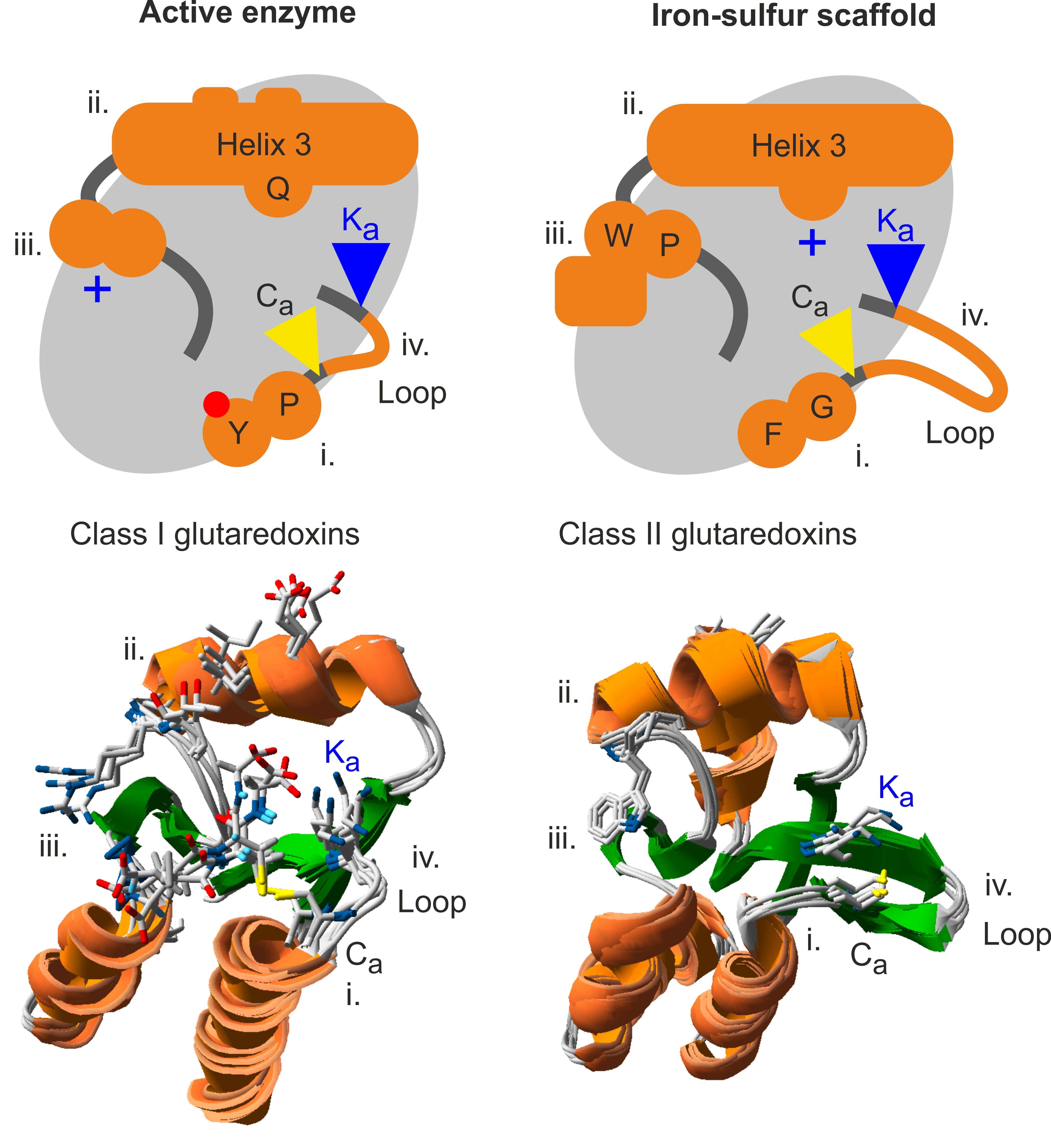 Abbildung 2: "Vergleich der vier funktionsbestimmenden strukturellen Unterschiede zwischen enzymatisch aktiven und inaktiven Glutaredoxinen"
