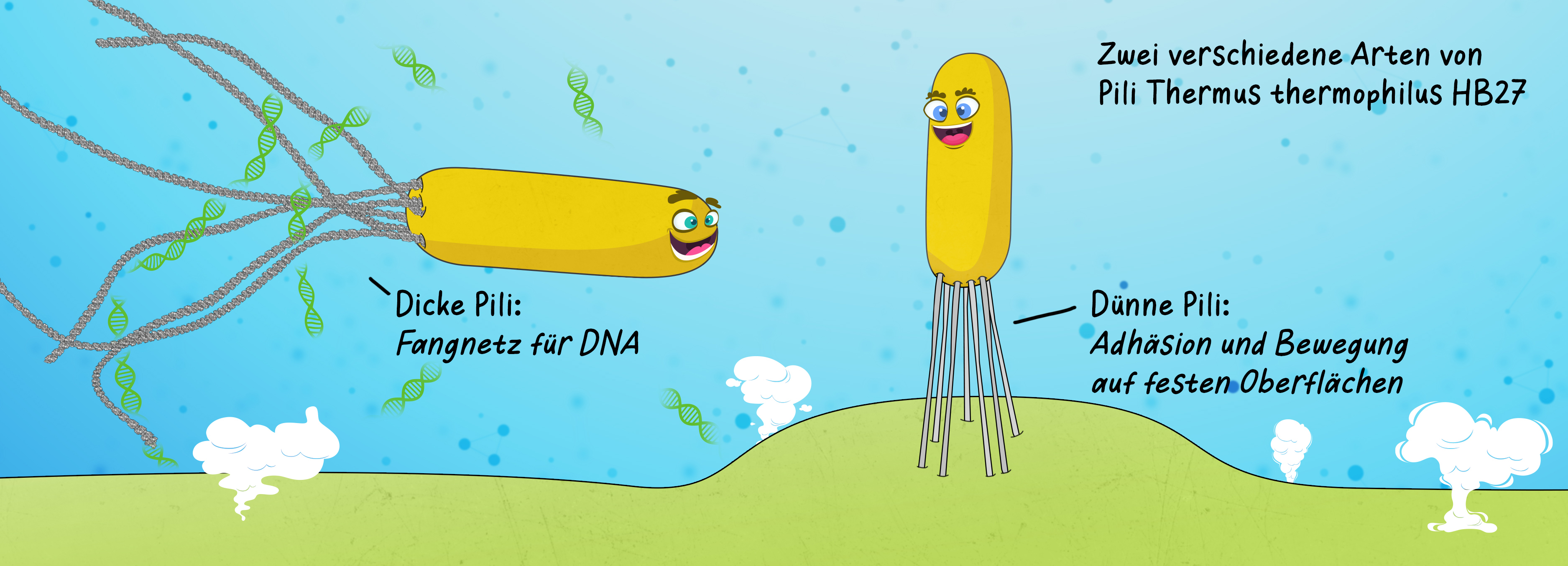 Wärmeliebende Bakterien nutzen unterschiedliche Oberflächen-Härchen zu Bewegung und DNA-Aufnahme
