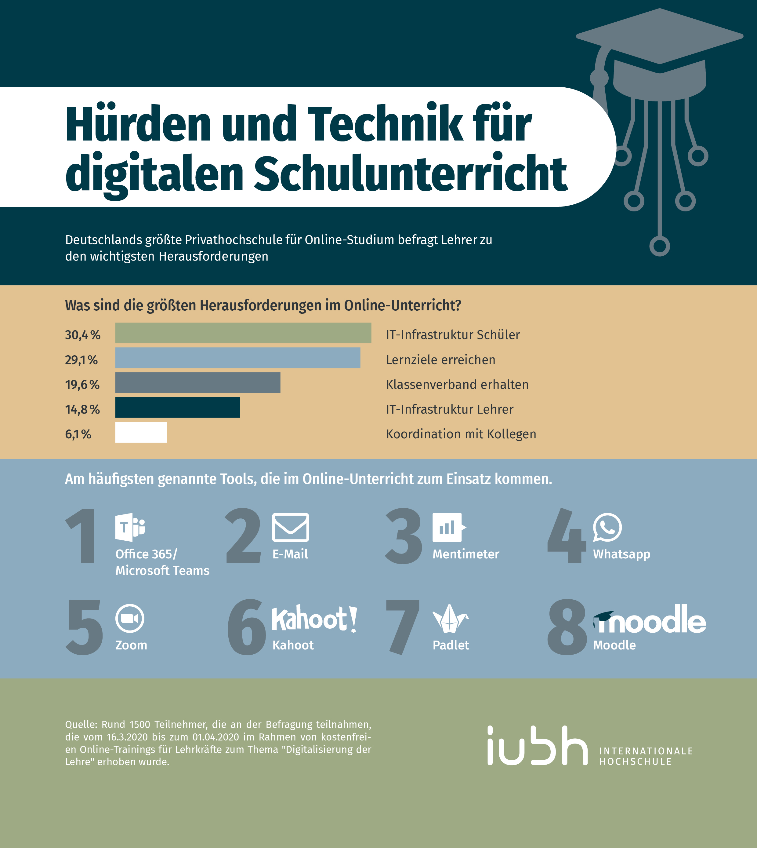Jeder Schüler muss Zugang zu digitalen Lernformen haben - das ist das wichtigste Fazit der aktuellen IUBH-Umfrage, an der rund 800 Lehrkräfte* teilnahmen. Um Schulen schnell an den Start für digitales Lernen zu bringen, wollte die IUBH wissen, worin die befragten Lehrerinnen und Lehrer die größten Herausforderungen im Online-Unterricht sehen.
