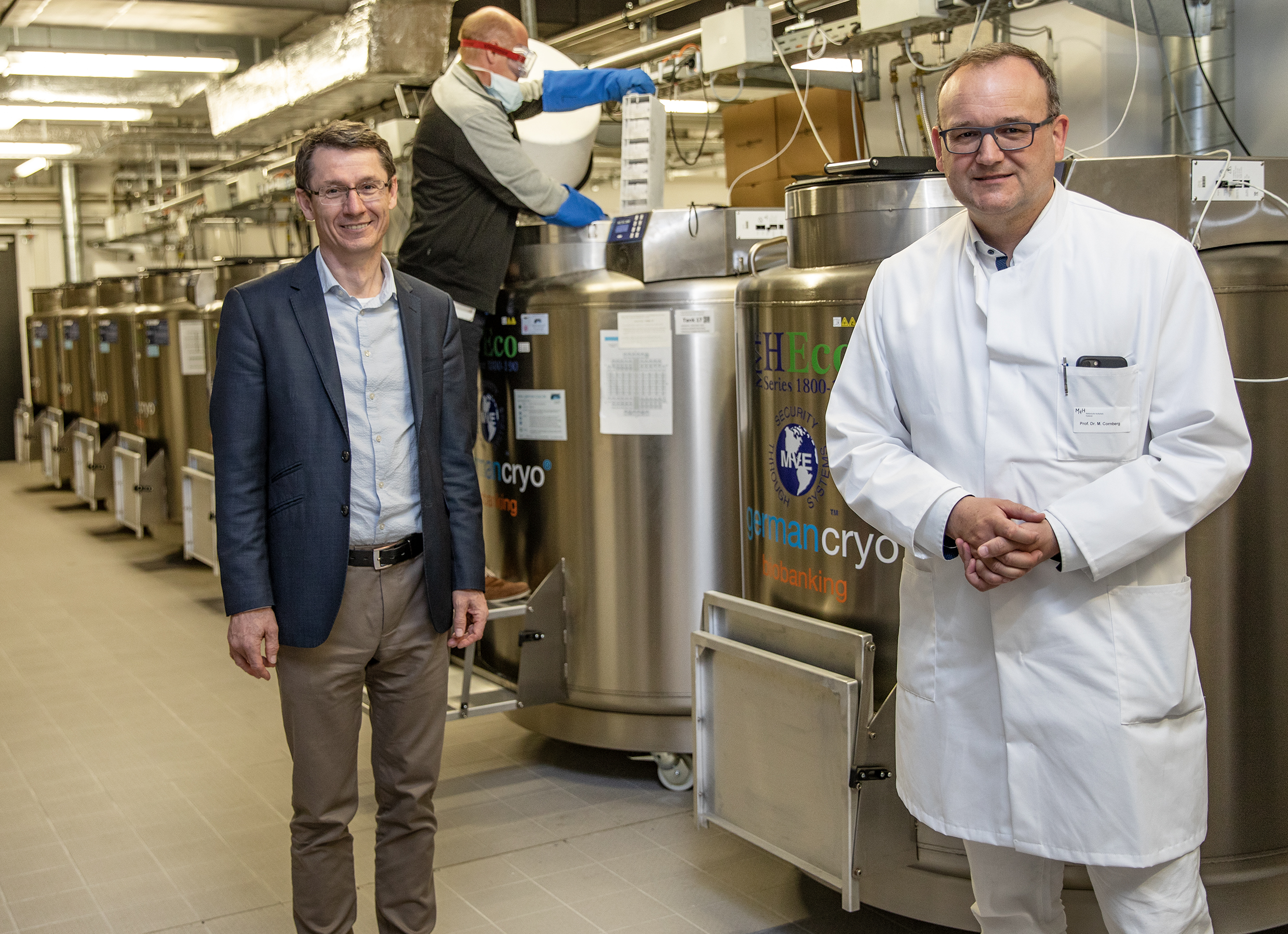 „Wir haben bereits mit dem Sammeln von Blutzellen, Plasma, Speichel, Urin, und Zellen aus dem Atmungstrakt begonnen und auch schon zahlreiche Anfragen für molekulare Analysen von den Forscherinnen und Forschern der MHH und des Helmholtz-Zentrums für Infektionsforschung (HZI) erhalten“, sagt Professor Dr. Thomas Illig, Leiter der HUB, wo die COVID-19-Biobank untergebracht ist. „Die HUB erfüllt die hohen Sicherheitsauflagen, um das die Bioproben zu verarbeiten und einzulagern“, betont er. Auch für die Aufarbeitung der lebenden Blutzellen gelten solche Auflagen. Darum kümmert sich das Team um Professor Dr. Markus Cornberg, leitender Oberarzt an der MHH-Klinik für Gastroenterologie, Hepatologie und Endokrinologie und Klinischer Direktor am HZI. Der Infektiologe ist zudem Direktor des Zentrums für Individualisierte Infektionsmedizin (Centre for Individualised Infection Medicine CiiM), einer gemeinschaftlichen Einrichtung von MHH und HZI. „Das CiiM ist die Brücke von Klinik und Forschung und soll langfristig auch eine Art Filiale der COVID-19-Biobank beherbergen“, sagt der Mediziner.