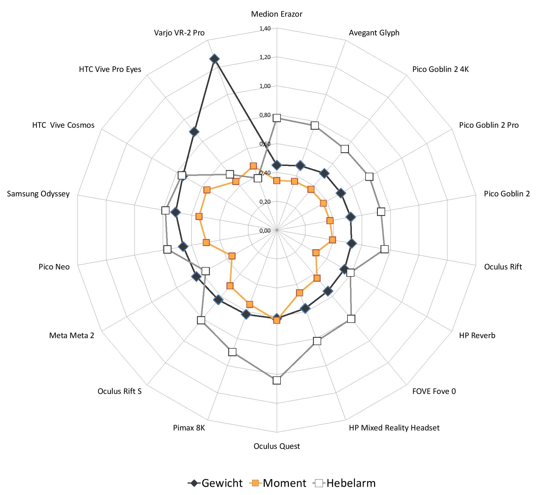 Innerhalb des Projekts „Applikationszentrum V/AR“ wurde diese Untersuchung zu den Schwerpunktpositionen und Drehmomenten von HMDs durchgeführt. Ziel der Analyse war es, das Gewicht (ohne Verkabelung) und die Gewichtsverteilung marktüblicher HMDs zu ermitteln und einander gegenüberzustellen. Die daraus gewonnenen Erkenntnisse können prospektiven XR-Anwendern bei der Systemauswahl helfen. Gleichzeitig bieten die Messungen eine Orientierung und Motivation für XR-Systemhersteller, die Geräteergonomie ihrer Produkte intensiv im Auge zu behalten.