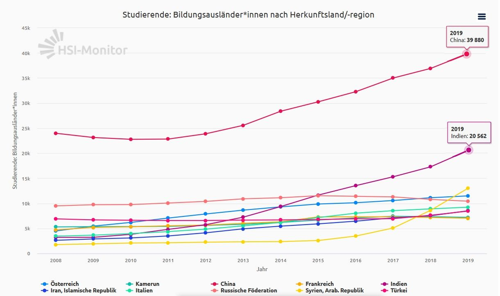 Der HSI-Monitor vereinfacht Hochschulen das Monitoring von Internationalisierungs-maßnahmen. Sie können die enthaltenen Daten themenspezifisch abrufen und für Berichte und die strategische Planung auswerten. Das Portal bietet dazu Zugang zu einem breiten Spektrum an Internationalisierungsindikatoren wie die Zahl internationaler Studierender und Promovierender, internationales Personal an Hochschulen, Hochschulkooperationen oder Förderungen von DAAD oder AvH. Auch die Internationalität der Forschung wird mithilfe verschiedener Indikatoren erfasst, so mit Daten zu DFG-Projekten mit internationaler Beteiligung und zu internationalen Publikationen.