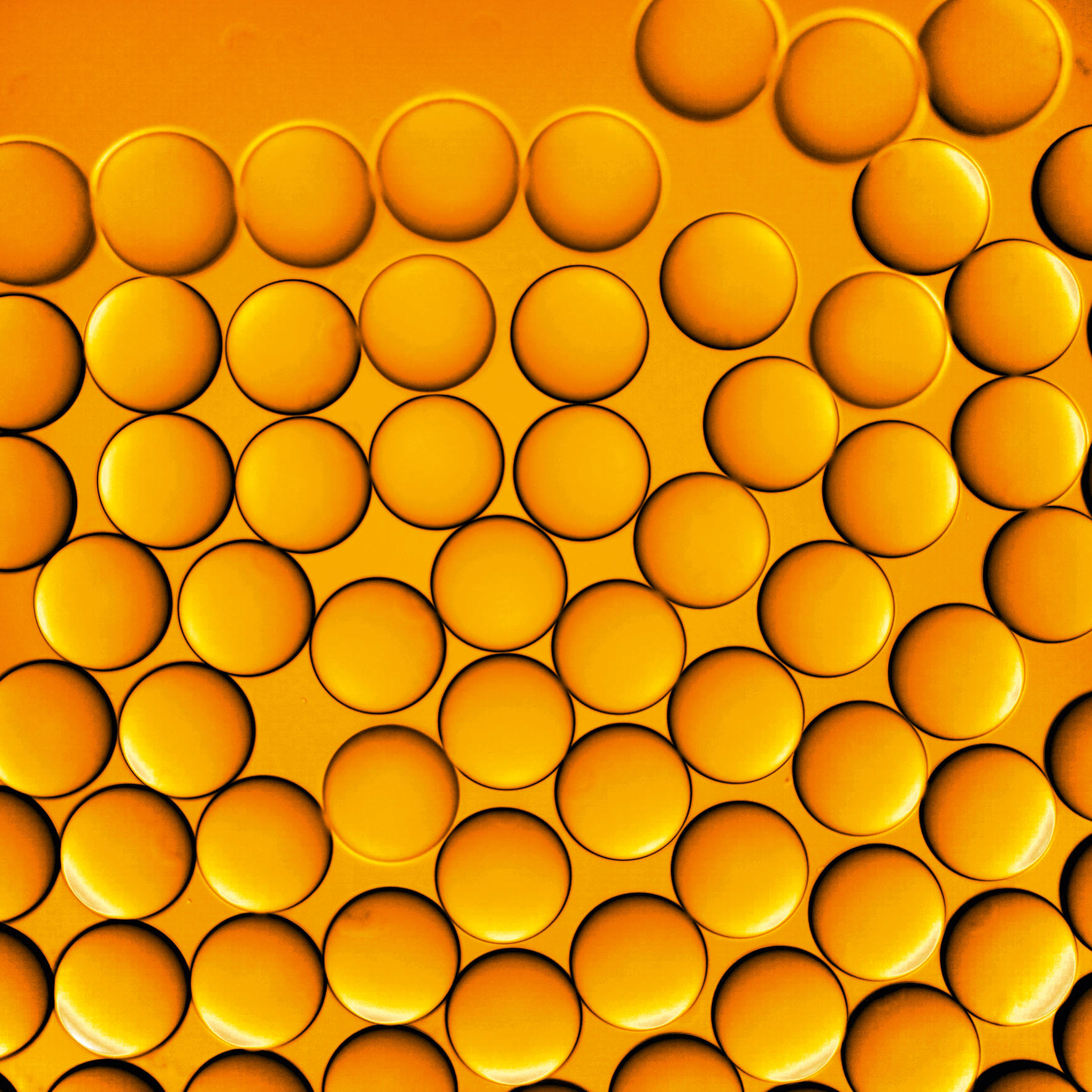 Mikroskopaufnahme einer Wasser-ÖL-Emulsion für die digitale Tröpfchen-Polymerase-Kettenreaktion. Der Durchmesser der Tröpfchen beträgt etwa 118 µm.