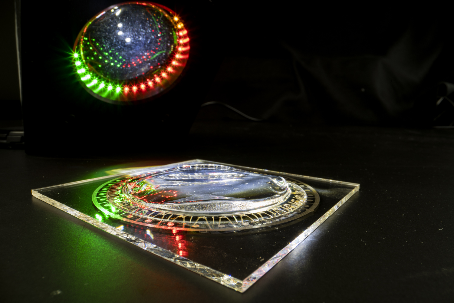 Optische Bauteile, etwa Scheinwerferoptiken für Autos, werden üblicherweise aus Glas oder Kunststoff geschliffen. Mit den neuen Technologien des Leitprojekts »Go Beyond 4.0« lassen sich nun auch frei geformte Optiken herstellen, die in einem Element statt der Eigenschaft einer Linse die Eigenschaften von drei Linsen vereinen. In diese Freiformoptiken können gleichfalls Leuchtdioden und damit Signalfunktionen integriert werden. »Auf diese Weise lassen sich komplexe optische Elemente herstellen, die bisher gar nicht denkbar waren«, sagt Baumann. Im Fokus stehen vor allem neue Anwendungsmöglichkeiten: Freiformoptiken könnten Informationen vom Auto aus auf die Straße projizieren, beispielsweise ein Stopp-Schild, bevor das reale Stoppschild zu sehen ist. Die nötigen Informationen könnte das Auto aus dem Internet oder aus der Netzumgebung beziehen.