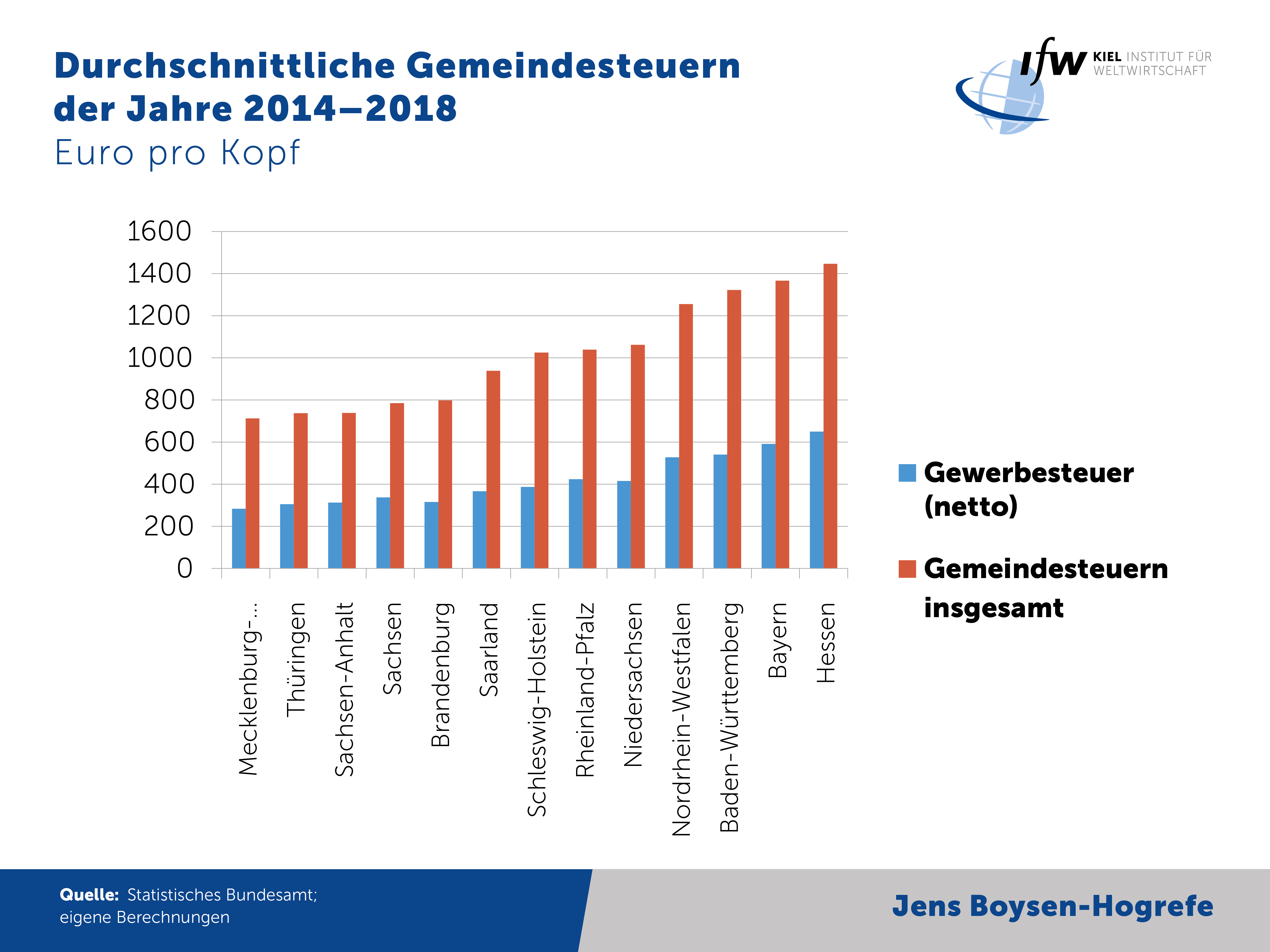 „Es ist grundsätzlich richtig, überschuldeten Kommunen zu helfen, doch sollte die Verantwortung der Länder durch einen höheren Finanzierungsanteil stärker betont werden. So wie Hessen seine Kommunen entschuldet hat, können auch Rheinland-Pfalz oder Nordrhein-Westfalen vorgehen“, so Boysen-Hogrefe. „Gegenwärtig werden Sozialausgaben auf Bundesebene beschlossen, müssen aber von den Kommunen finanziert werden. Dieses strukturelle Problem sollte beseitigt werden, der Bund sollte alle von ihm beschlossenen Ausgaben auch vollständig selbst tragen.“