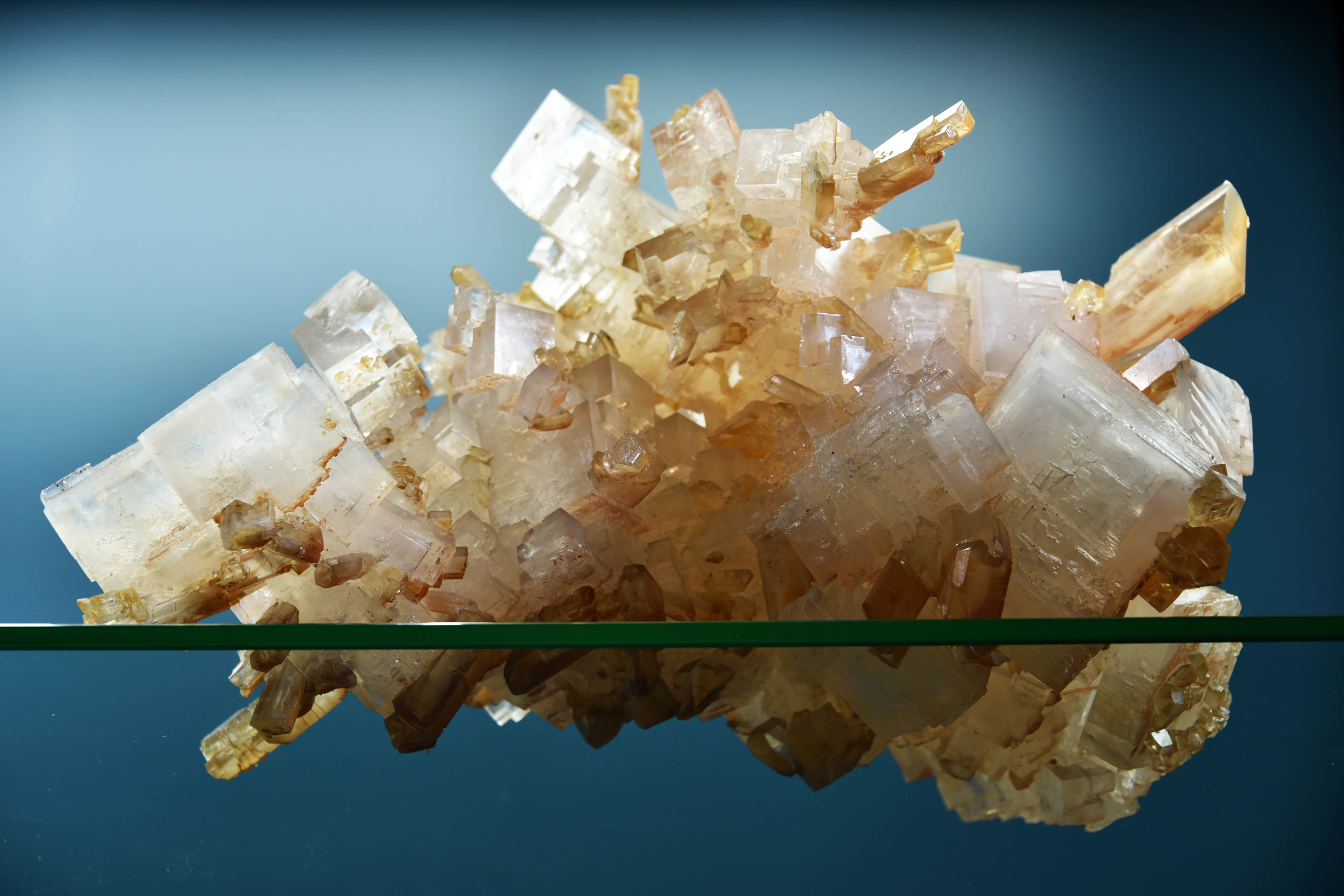 Manche der ausgestellten Salze sind vollkommen farblos, andere wiederum sind gelb-orange gefärbt. Auch ein rot fluoreszierender Halit aus Polen findet sich unter den Exponaten, den Besucherinnen und Besucher im UV-Kabinett der Sammlung bewundern können. Viele der Ausstellungsobjekte gehören schon länger zur Mineralogischen Sammlung, es gibt aber auch eine größere Anzahl Leihgaben und Neuzugänge. Die Salzkristalle stammen sowohl aus internationalen Lagerstätten als auch aus Thüringen selbst. Regional sind beispielsweise das Werragebiet und der Südharz als Herkunftsorte vertreten. Die ältesten gezeigten Objekte aus dem Jenaer Sammlungsbestand sind baden-württembergischen Ursprungs: Es handelt sich um Geschenke von Großherzog Carl August von Sachsen-Weimar-Eisenach (1757-1828) an die „Societät für die Gesammte Mineralogie zu Jena“ aus dem Jahr 1822.
