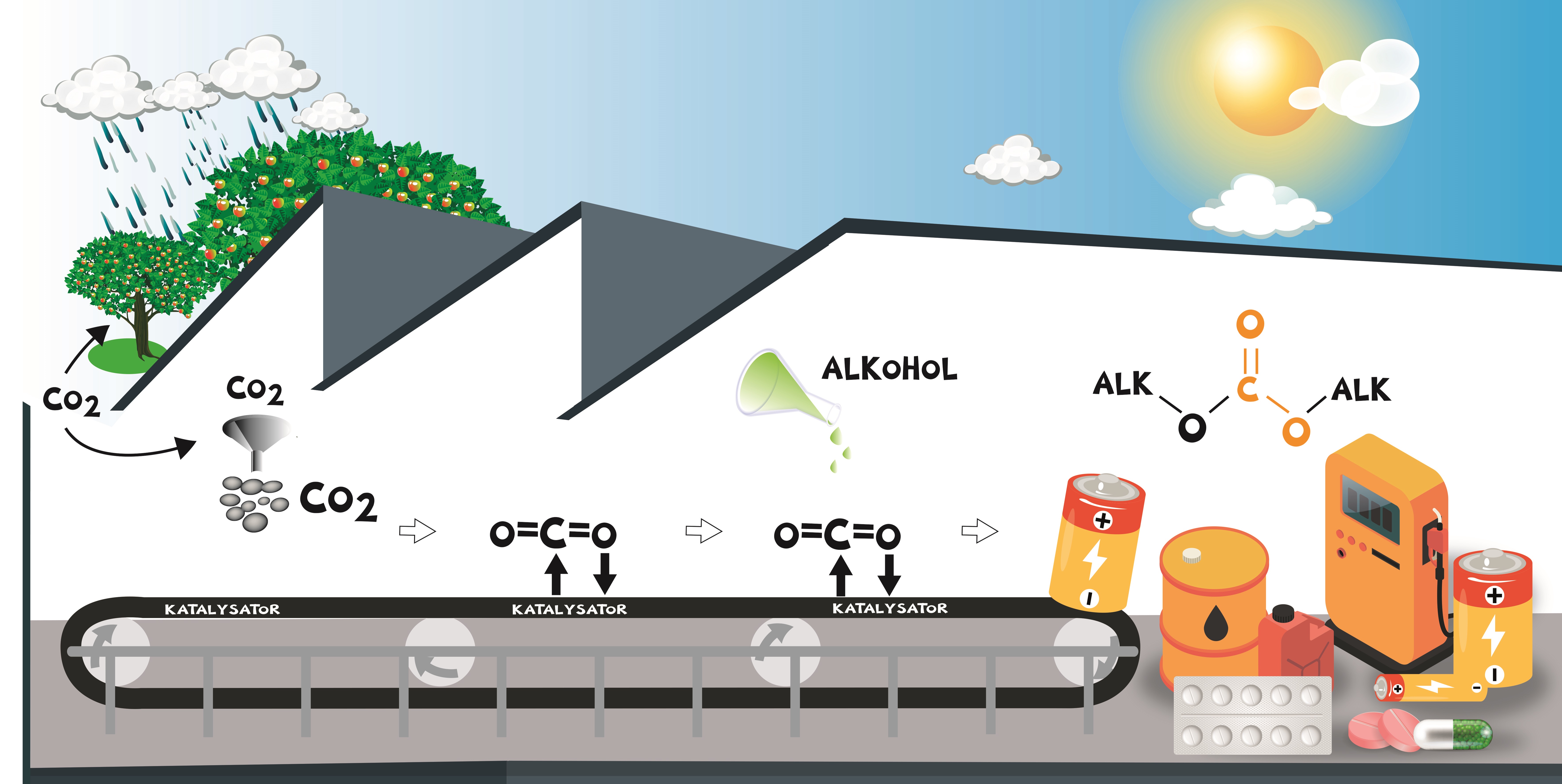 Wer diese Kohlenstoff-Quelle anzapfen möchte, steht vor einer kniffligen Aufgabe, wie Sebastian Wohlrab weiter erläutert. „Der CO2-Anteil in der Luft ist mit 400 ppm für eine chemische Reaktion mit effektiven Resultaten sehr gering.“ Bisherige Verfahren zur Umsetzung von Kohlendioxid, wie die Harnstoffsynthese, nutzen hochkonzentrierte CO2-Ströme. Und die Veresterung von CO2 funktioniert im Labor bisher nur unter hohem Druck.