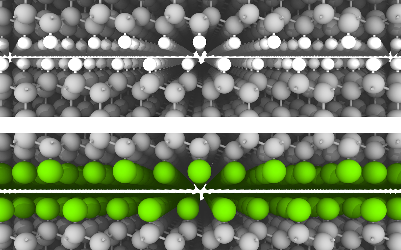 Um herauszufinden, welche Parameter für die Reibung wirklich entscheidend sind, nutzte das Forschungsteam dann einen Trick: »Man muss sich das vorstellen, als würde man Sicherungen in einer erleuchteten Wohnung durchprobieren, um die richtige zu finden«, veranschaulicht Reichenbach das Vorgehen. Da die Passivierung mit Fluor die Reibung auf atomar planen Diamantschichten gegenüber der Wasserstoffpassivierung in etwa halbiert, vertauschten sie im Kraftfeld Schritt für Schritt die Parameter von Wasserstoff und Fluor. »Sollte der Parameter wirklich relevant sein für die Reibung, hätten wir in der Simulation eine Umkehrung der Reibwerte von Wasserstoff und Fluor gesehen«, so Reichenbach.