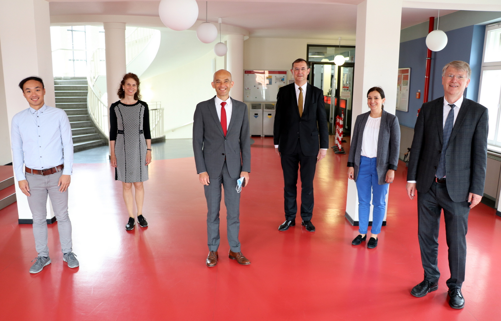 V. l. n. r.: Wissenschaftlicher Mitarbeiter Duc Pham, Fach- und Projektleiterin Prof. Dr. Andrea Pelzeter, Präsident Prof. Dr. Andreas Zaby (alle HWR Berlin), Geschäftsführer Stéphane Beemelmans, Referentin Katharina Arseven und Geschäftsleiter Karl-Heinz Heller (alle PD)