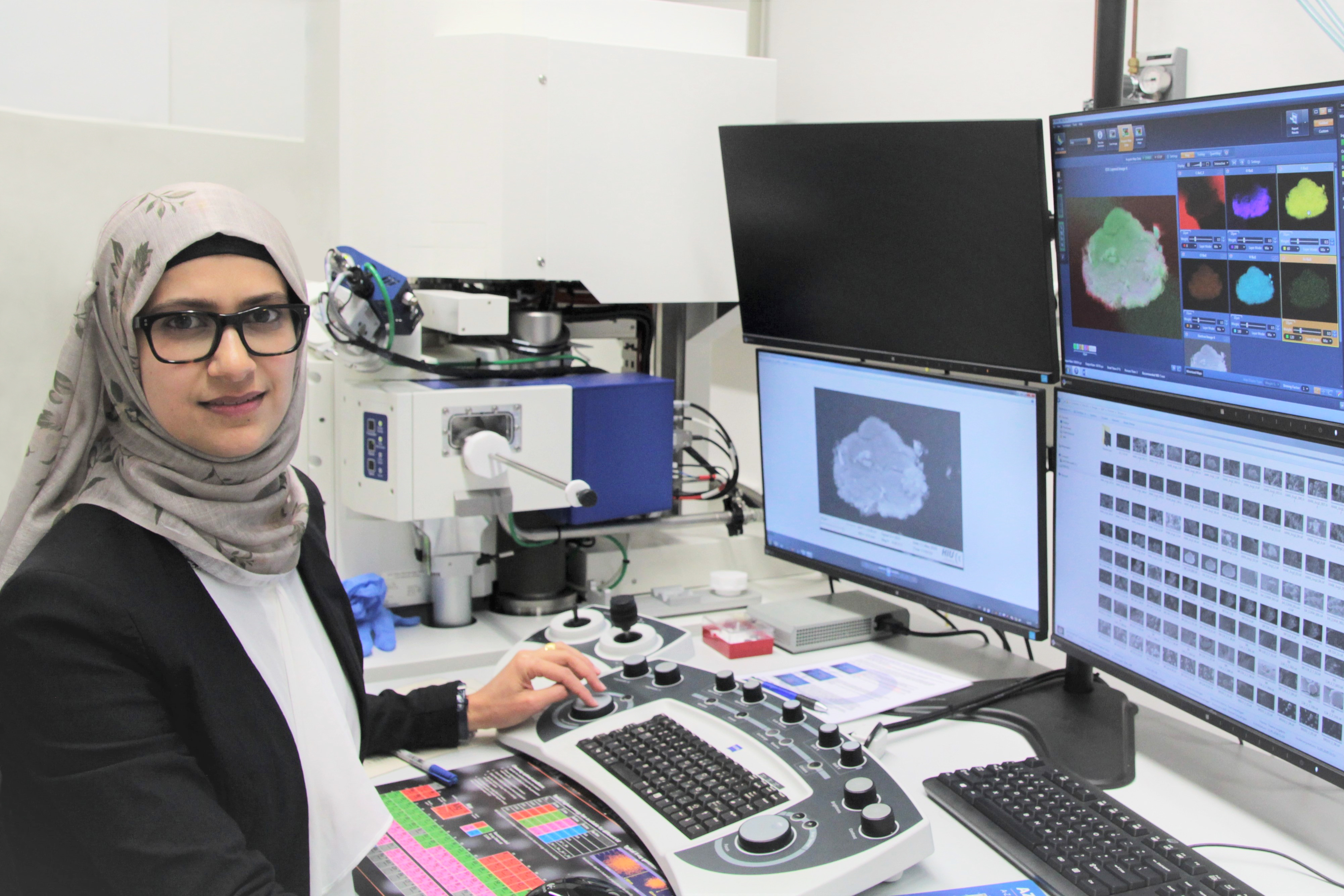 Dr. Montaha Anjass ist Grenzgängerin und Brückenbauerin zugleich. Die 32-jährige Palästinenserin, die an der Birzeit University (West Bank) ihren Bachelor in Chemie absolviert hat, kam 2013 an die Universität Ulm, um im internationalen Studiengang Advanced Materials ihren Master zu machen. Die Wissenschaftlerin, die fließend Arabisch, Englisch und Deutsch spricht, befasst sich bereits seit ihrer Abschlussarbeit mit einem Forschungsthema von globaler Bedeutung: der Suche nach den Batterien der Zukunft und dafür geeigneter Materialien. In ihrer Doktorarbeit, die sowohl am Institut für Organische Chemie I als auch am Institut für Elektrochemie angesiedelt war, verbindet sie theoretische Fragestellungen zu den Grundlagen elektrochemischer Speicherprozesse mit experimenteller Forschung zu funktionellen Speicher-Designs. Und auch ihr Postdoc-Projekt am Helmholtz-Institut Ulm (HIU) bewegt sich im Grenzgebiet zwischen theoretischer Elektrochemie und der praktischen Frage, wie sich Batteriematerialien mit Hilfe anorganischer Materialien kombinieren lassen. Seit März 2019 ist Dr. Montaha Anjass Juniorgruppenleiterin am HIU. Dort geht sie der Frage nach, wie sich lithiumfreie Speichersysteme, die auf der Grundlage von Natrium und Magnesium basieren, mit Hilfe neuer Elektrodendesigns optimieren lassen. Für ihr Habilitationsprojekt hat sie sich vorgenommen, ein Hybrid-Material aus organischen und anorganischen Substanzen zu entwickeln, das für eine hohe Stabilität und Speicherfähigkeit sorgt und zugleich gut zu recyclen ist. Die Wissenschaftlerin ist verheiratet und hat drei Kinder.
