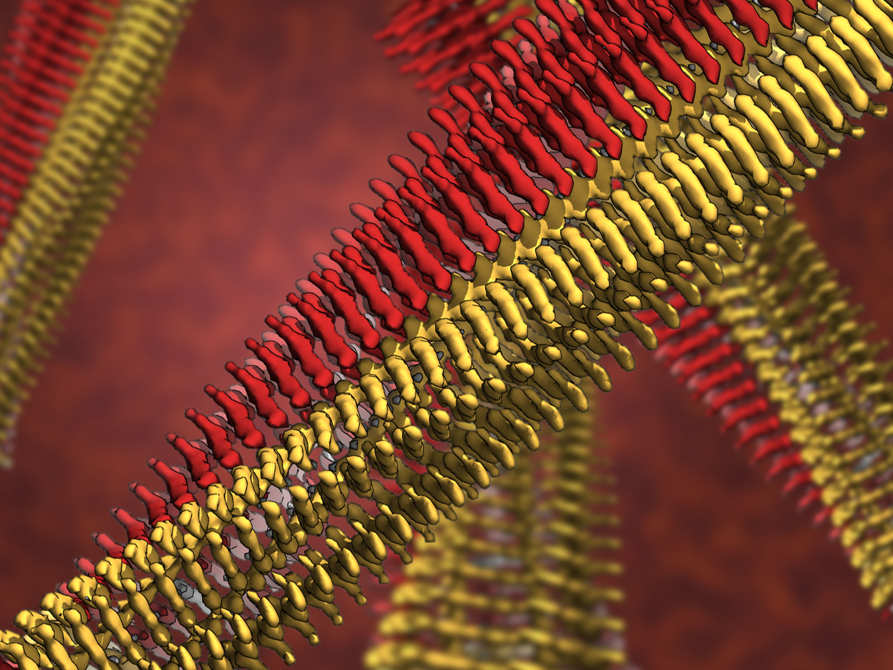 „Diese Amyloid-Fibrillen werden seit vielen Jahren intensiv erforscht. Lange Zeit konnte man aber nur auf sehr niedrig aufgelöste Strukturen zurückgreifen“, erklärt Gunnar Schröder vom Forschungszentrums Jülich und der Heinrich-Heine-Universität Düsseldorf. 2017 hat er gemeinsam mit Partnern und Kollegen eines der ersten atomgenauen 3D-Modelle einer solchen Fibrille überhaupt vorgestellt: in diesem Fall einer Alzheimer-Fibrille, die aus dem Peptid Amyloid-beta (Abeta) besteht.