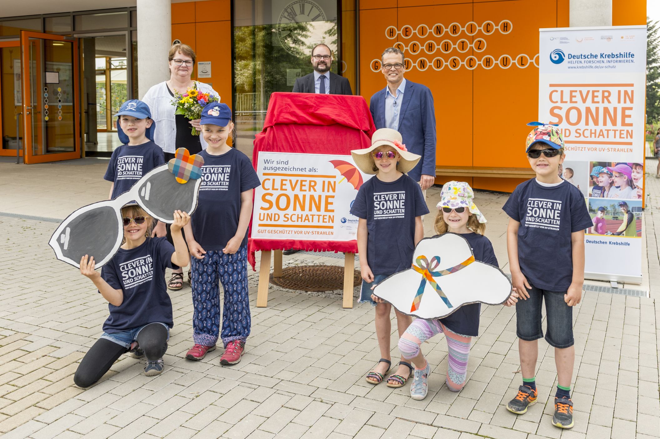 „Für die Deutsche Krebshilfe ist das CLEVER IN SONNE UND SCHATTEN-Programm für Grundschulklassen 1 und 2 einer von vielen Bausteinen der Krebsprävention, der wir uns gemeinsam mit unseren Partnern stellen“, betont Gerd Nettekoven, Vorstandsvorsitzender der Deutschen Krebshilfe. Auch Susanne Klehn, die Botschafterin der Deutschen Krebshilfe für Hautkrebsprävention, ist begeistert: „Als Hautkrebspatientin weiß ich, wie wichtig Sonnenschutz ist. UV-Schutz muss bei den Kleinsten beginnen, um Hautkrebs im Erwachsenenalter vorzubeugen. Ich freue mich riesig mit den Schülerinnen und Schülern sowie der ganzen 61. Grundschule und gratuliere herzlichst zu der Auszeichnung!“