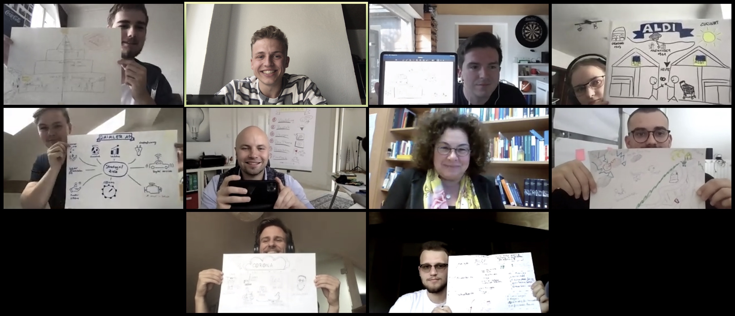 Viele andere Elemente des universitären Alltags wurden ebenfalls ins Netz verlagert: „Damit unsere neuen Studierenden schnell reinkommen und Kontakte finden, haben wir eine digitale Happy Hour veranstaltet, bei der Erstis und studentische Initiativen zusammengekommen sind – eine Stunde war geplant, es wurden mehr als drei, mit vielen Verabredungen für die nächsten Tage“ erzählen Jonah (21) und Ole (19) aus der Fakultät für Wirtschaft und Gesellschaft. „Bei uns im Entrepreneurship Zentrum finden Coffee Breaks jetzt digital statt, so verlieren sich die Teams auch im Homeoffice nicht aus den Augen. Das klappt wirklich super!“ schwärmen Julia (22) und Marie-Jana (22), die gerade den Launch ihrer Erlebnis-App vorbereiten. Selbst die kleinen informellen Gespräche und Menscheleien gibt es noch, wenn Haustiere durch das Bild laufen, wenn Eltern oder Kinder reinplatzen und bei offenem Mikrofon ein ganzes Seminar unterhalten, oder wenn Kuchenrezepte mit den Statistikaufgaben übermittelt werden.