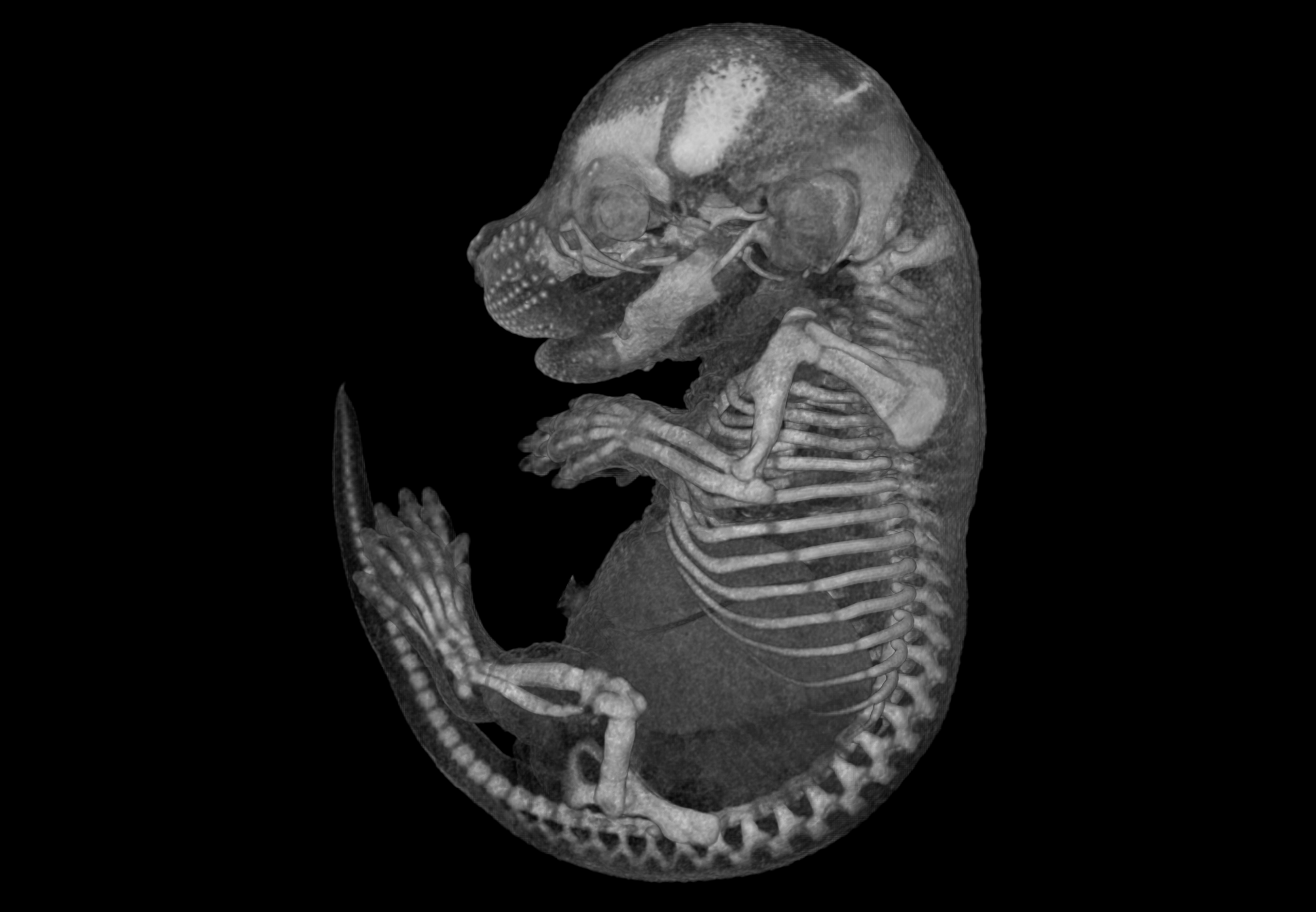 Seit Jahrzehnten ist das Aufhellen und Färben mit Alcianblau und Alizarinrot der Goldstandard für die Darstellung der Skelettentwicklung von Wirbeltieren. In ihrer nun veröffentlichten Studie präsentiert ein Forschungsteam der Vetmeduni Vienna einen neuen Workflow für die Visualisierung und Analyse der Skelettentwicklung mittels mikroskopischer Computertomographie (microCT). Dadurch können echte 3D-Daten des gesamten sich entwickelnden Skeletts mit einer Auflösung von Mikrometern erfasst werden. „Unsere Methode bietet WissenschafterInnen zum ersten Mal die Möglichkeit, die Entwicklung von Knorpeln und Knochen im Mäuseembryo simultan und effektiv in 3D zu studieren. Zudem können wir in die Auswertung auch die Entwicklung anderer innerer Organe wie Gehirn oder Verdauungstrakt miteinbeziehen“, erklärt Erstautorin Simone Gabner von der Arbeitsgruppe Histologie und Embryologie des Instituts für Pathologie der Vetmeduni Vienna. „Die neue Methode ermöglicht sowohl die Visualisierung und qualitative Beurteilung der Skelettentwicklung als auch eine umfangreiche quantitative Analyse, also Messungen zu Größe und Form einzelner Skelettelemente“, so Gabner weiter.
