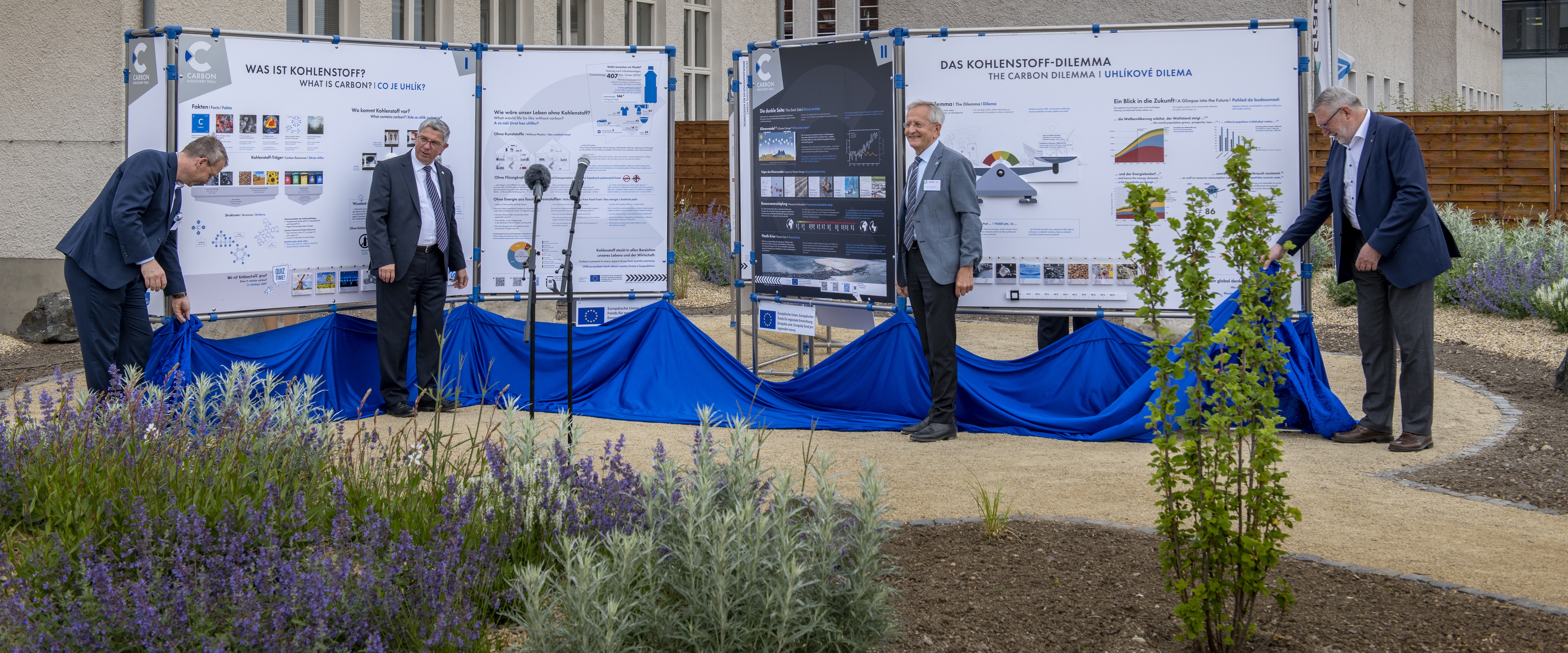 Der von den Forscher/innen konzipierte „Carbon Discovery Trail“ führt an sechs interaktiven Infoboards auf dem Außengelände der Reichen Zeche, dem Freiberger Standort zur 4. Sächsischen Landesausstellung, entlang. Mitmach-Stationen, Videos und interaktive Grafiken laden die Besucher/innen ein, zu entdecken, welche Rohstoffe und Produkte Kohlenstoff enthalten und welche negativen Folgen deren Nutzung mit sich bringt. Die Lösungsansätze warten nur eine Station weiter: Anhand praktischer Beispiele erfahren Besucher/innen, was sie tun können, um ihren CO2-Fußabdruck zu reduzieren. Außerdem wird anschaulich, wie Kohlenstoff in der Industrie künftig nachhaltiger eingesetzt werden muss, um eine Kohlenstoffkreislaufwirtschaft zu erreichen.