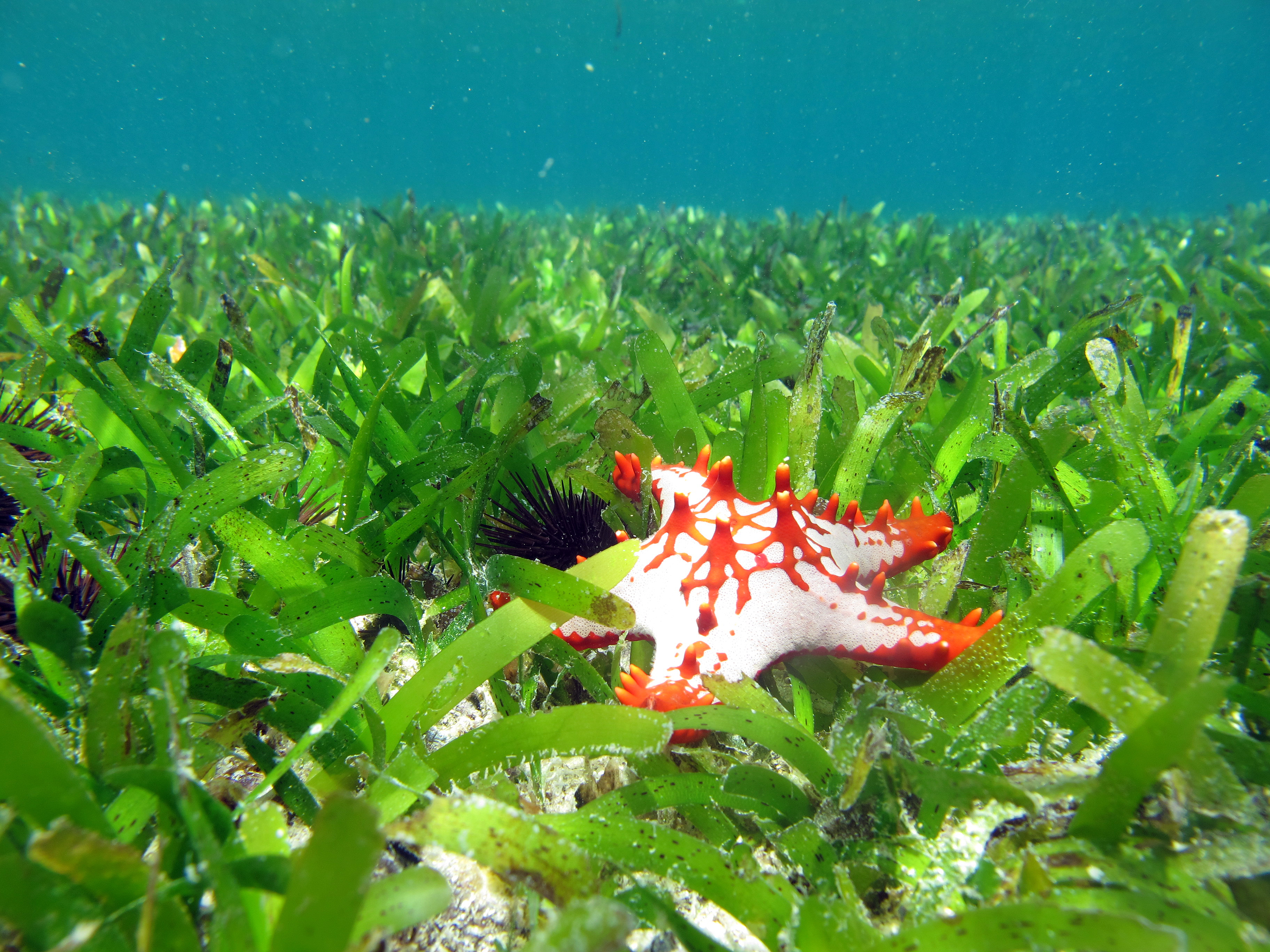 Seagrass meadows enrich their environment with oxygen and at the same time bind large quantities of the greenhouse gas carbon dioxide, more so than rainforests. They serve as nursery for a large number of edible fish and shellfish and are a food source for large marine animals such as turtles and manatees. With its roots, seagrass strengthens the sediment on the seabed and thus prevents coastal erosion.