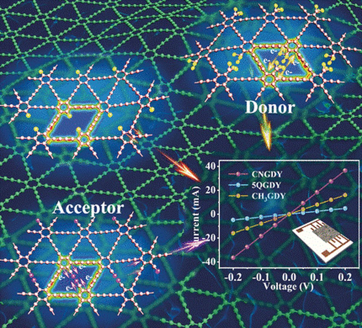 Für die Synthese des modifizierten Graphdiins trugen die Wissenschaftler molekulare Vorstufen auf eine Kupferfolie auf, wo sich durch Selbstorganisation geordnete geschichtete Nanostrukturen aus Graphdiin herausbildeten. Funktionelles Graphdiin stellten die Forscher aus Vorstufen her, die funktionelle Gruppen mit interessanten elektronischen Eigenschaften enthielten.