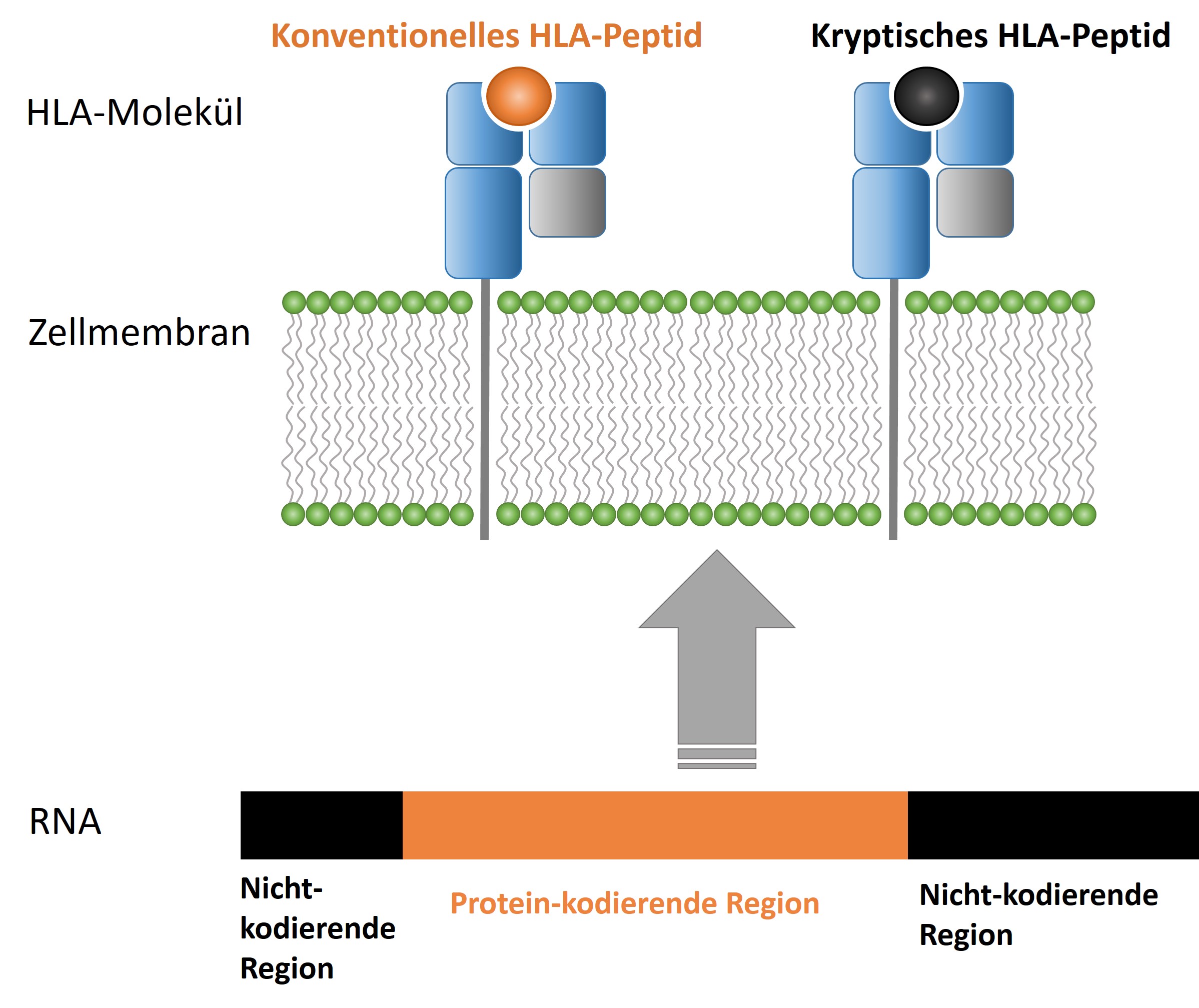 Neben den gewöhnlichen HLA-Peptiden gibt es auch kryptische HLA-Peptide. Diese stammen von bestimmten RNA-Sequenzen ab, die nicht wie sonst üblich Informationen für ein bestimmtes Protein enthalten. In den letzten Jahrzehnten wurden lediglich vereinzelt kryptische HLA-Peptide ermittelt, da diese zum einen sehr klein sind und in den Zellen schnell abgebaut werden. Zum anderen fehlten effiziente Computerprogramme für die Analyse.