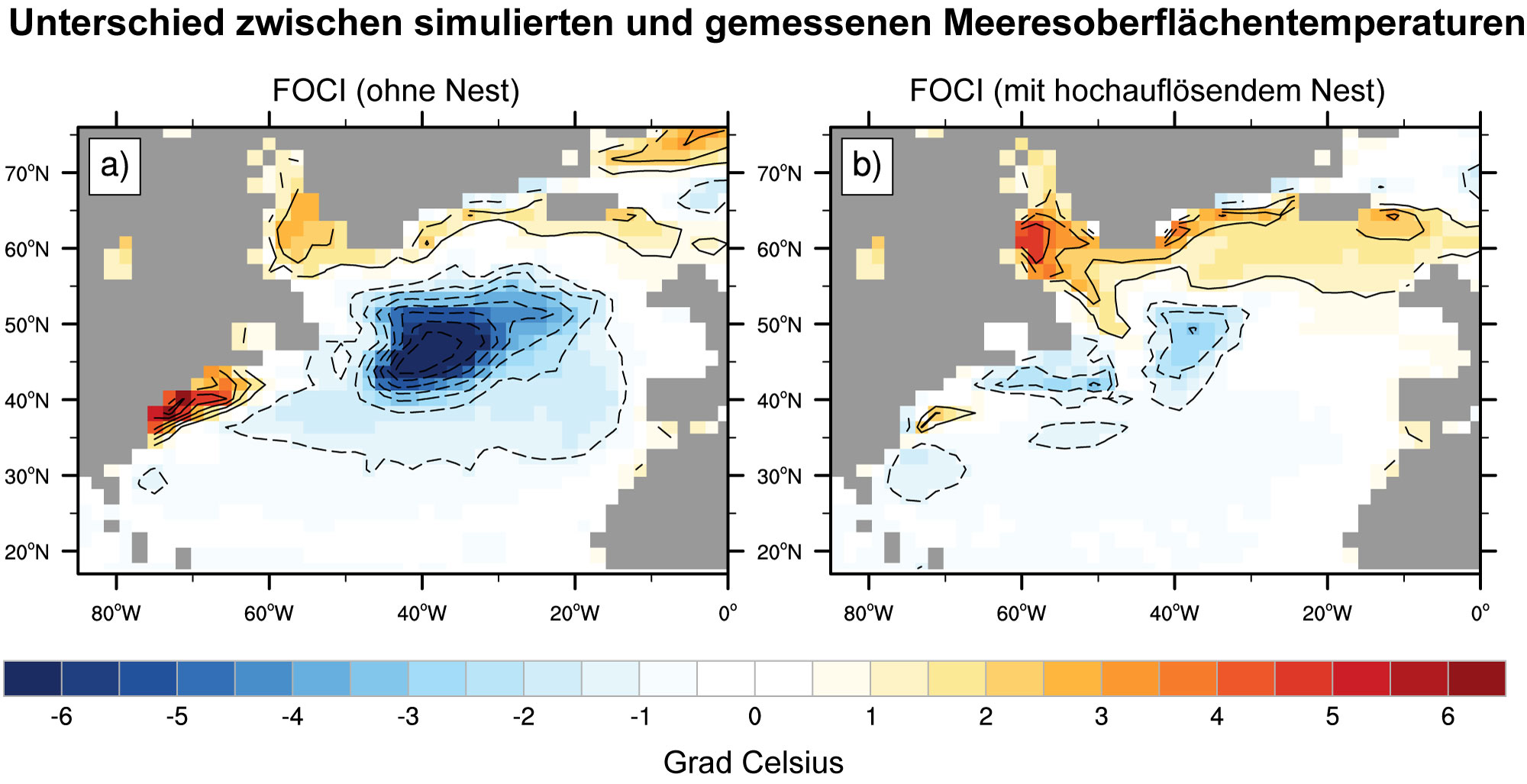 „Mit dem neuen System können wir sehr viele Fragestellungen auf ganz unterschiedlichen Zeitskalen untersuchen“, erläutert Professor Dr. Arne Biastoch, Leiter der Forschungseinheit Ozeandynamik am GEOMAR. „Wir haben das System zunächst standardisierten Basistests unterzogen“, so der Ozeanograph weiter. „Wir mussten herausfinden, ob das Modellsystem in der Lage ist, das beobachtete Klima und die bekannten Ozeanströmungen nachzubilden. Erst wenn dies innerhalb enger Fehlergrenzen erfolgreich ist, kann das System auch für die Untersuchung unbekannter Phänomene oder für Entwicklungen zukünftiger Klimazustände eingesetzt werden“. Die Ergebnisse, die jetzt in der internationalen Fachzeitschrift Geoscience Model Development publiziert wurden, sind sehr vielversprechend. „Besonders unser spezielles Knowhow, das Ozeanmodell regional mit sehr hoher Auflösung zu betreiben, verbessert die Ergebnisse erheblich und verringert beispielsweise sonst übliche Modellfehler wie Abweichungen der Meeresoberflächentemperaturen im Golfstromsystem“, so Professor Biastoch. Ferner sind mit FOCI Konfigurationen mit bisher unerreichten räumlichen Auflösungen von bis zu einem Kilometer im Ozean möglich.
