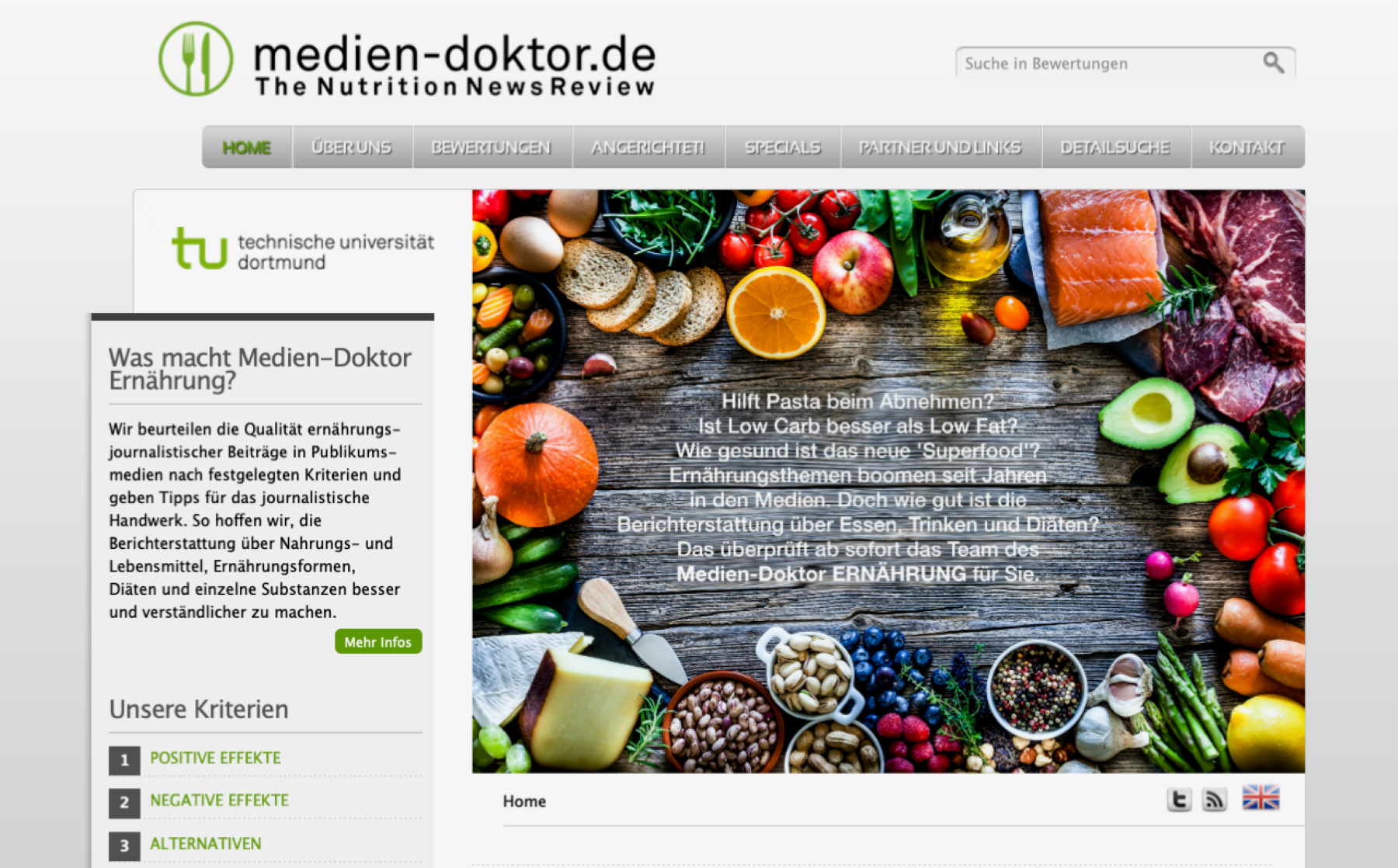 Macht Pasta schlank? Ist Low-Carb besser als Low-Fat – sind weniger Kohlenhydrate besser als weniger Fett? Wie gesund ist das neue Superfood? Die Berichterstattung über Ernährung boomt, angereichert um wissenschaftliche Studien, Ratgeber-Anleitungen zum Abnehmen und medizinische Tipps. Doch wie gut ist die journalistische Aufarbeitung von Ernährungsstudien und des komplexen Themas rund ums Essen und Trinken? Das nimmt ab sofort der Medien-Doktor ERNÄHRUNG unter die Lupe – ein Forschungsprojekt des Kompetenzclusters für Ernährung und kardiovaskuläre Gesundheit (nutriCARD) der Universitäten Halle-Jena-Leipzig in Kooperation mit der Technischen Universität Dortmund.