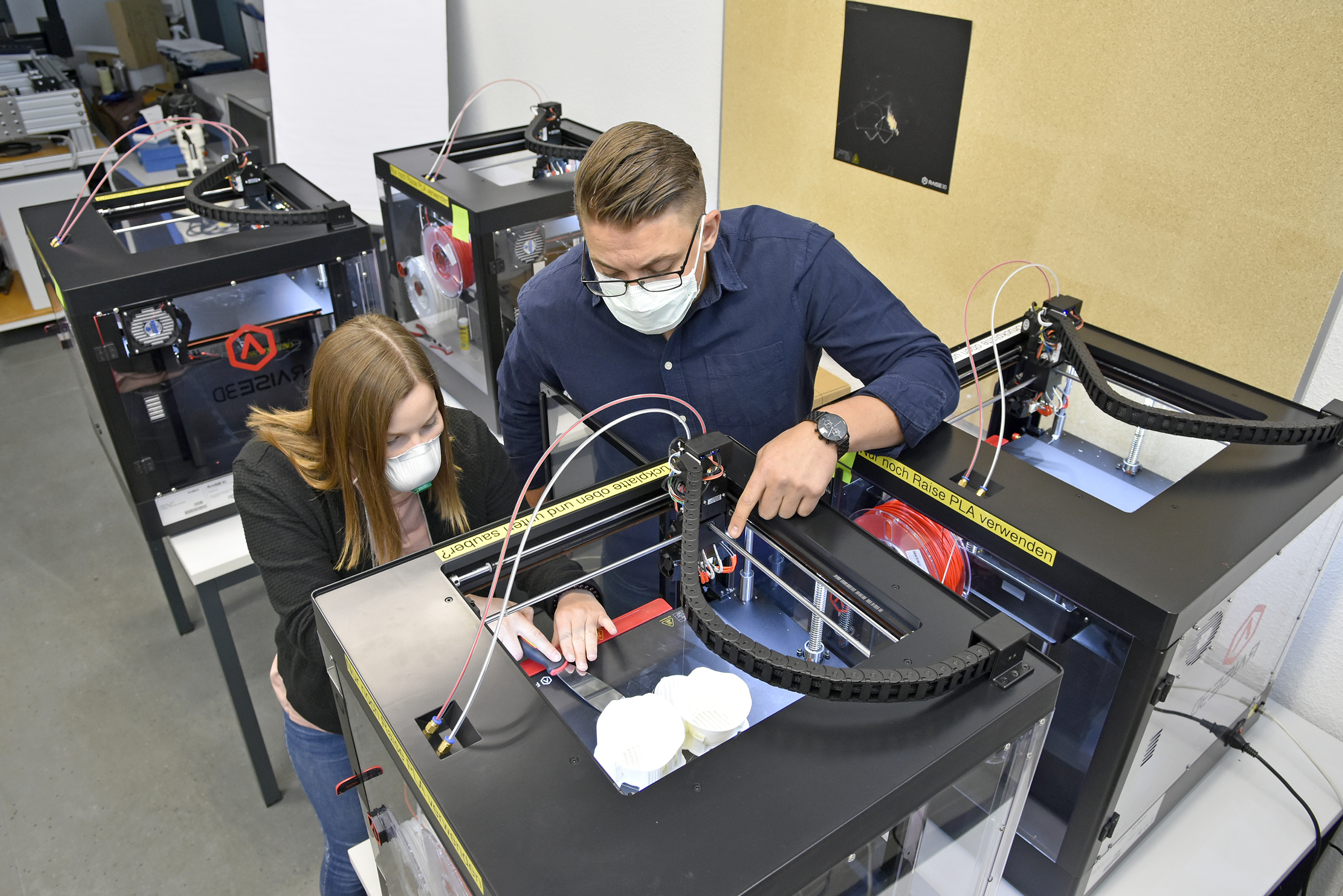 Zwei Studierende der Hochschule Koblenz haben im Rahmen einer Projektarbeit eine individuell angepasste Mund-Nasen-Maske für den medizinischen Bereich entwickelt. Dabei ist das Besondere des 3D-Druckprozesses, dass die entstehende Maske exakt die eigens eingescannten Gesichtskonturen der Trägerin oder des Trägers integriert. Das Projekt ist auf Bitte eines Zahnarztes aus Lahnstein entstanden, der sich und sein Team besser schützen und gleichzeitig etwas gegen das erhöhte Müllaufkommen durch Einmalmasken tun wollte. Als Ergebnis der Entwicklungsphase konnte das junge Forscherteam nun sieben fertige Masken in der Zahnarztpraxis übergeben.